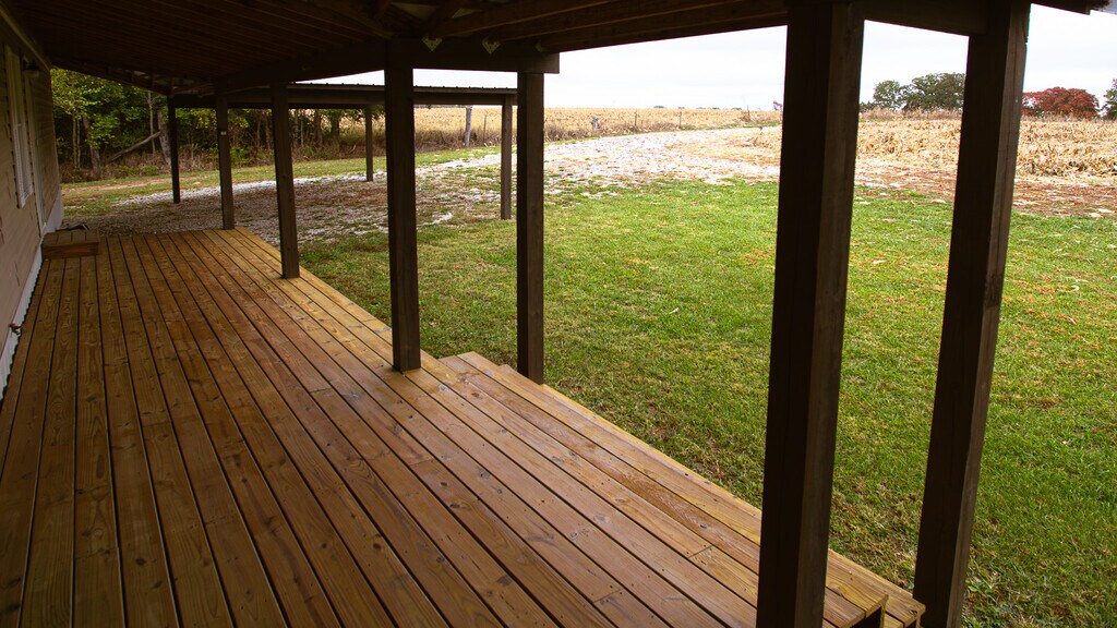 Enjoy the best of modern comfort and peaceful country living in this beautifully maintained 3-bedroom, 2-bath home set on a spacious, wooded lot surrounded by open fields. Inside, the 1,100 sq. ft. interior features thoughtful updates including a new washer, dryer, and stove, along with custom built-in cabinetry that adds both style and storage. Utilities are minimal—this home uses a private well, so only electric and trash services are required. Step outside to unwind or entertain on the 500-sq.-ft. covered back porch, enjoy your morning coffee on the 400-sq.-ft. front porch, or take advantage of the 24' x 24' two-car carport for convenient covered parking. A 10' x 14' storage shed with lean-to provides extra space for tools or hobbies. Surrounded by nature and daily wildlife sightings, this property offers the tranquility of rural life with the updates and conveniences of modern living. A rare opportunity for comfort, privacy, and peace—schedule your showing today.