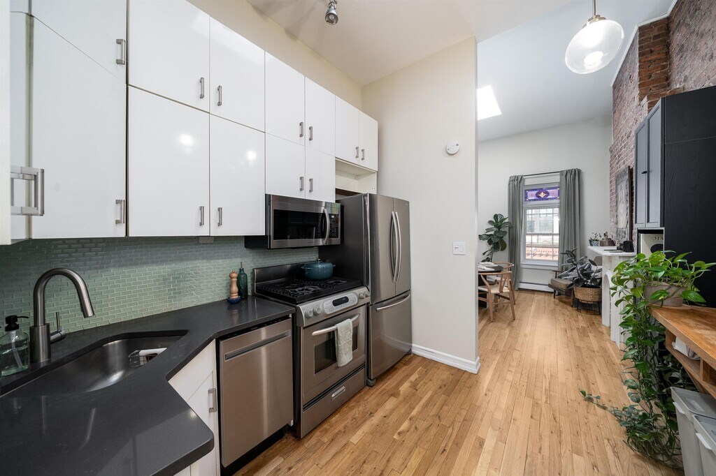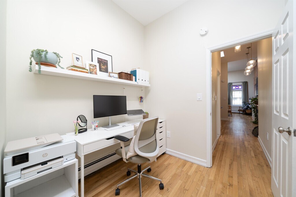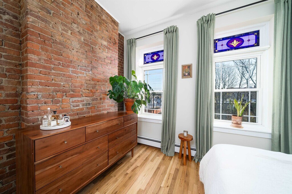 Rare Penthouse Gem in Prime Uptown Hoboken. Don't miss this unique opportunity to rent a stunning 2-bedroom + office, 1-bathroom penthouse at 205 14th Street. Nestled in one of Hoboken’s most sought-after neighborhoods, this uptown home blends historic charm with modern comfort. Featuring soaring 12’ ceilings, exposed brick walls, decorative fireplaces, stained glass transoms, and an in-unit washer/dryer, this sun-filled space provides the charm and convenience you crave. Four skylights flood the home with natural light throughout the day, creating a warm and inviting atmosphere. This spacious home has ample space to unwind, entertain and work from home in the dedicated office area. Step outside and experience the best of Hoboken—charming cafés, vibrant restaurants, boutique shopping, Trader Joe’s, the scenic waterfront, and beautiful parks. Commuting is a breeze with NYC buses at your doorstep and ferry services just a short walk away. Rental parking options are available nearby if needed. Heat and hot water are included along with access to a well maintained shared yard. Available June 1.