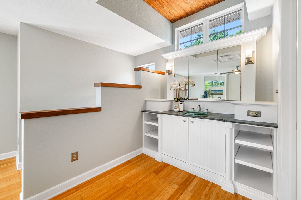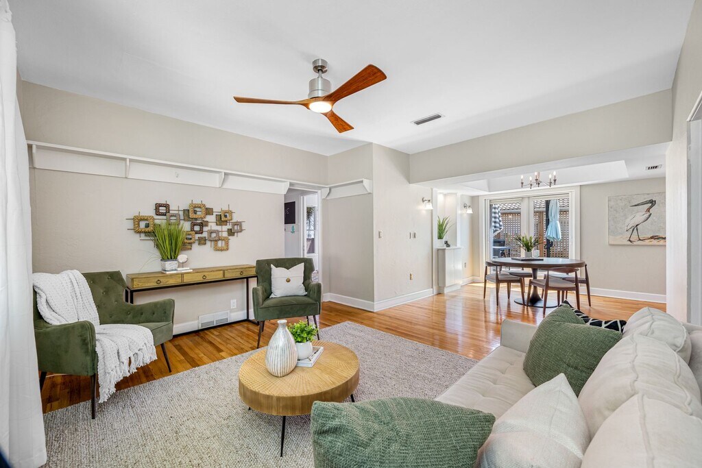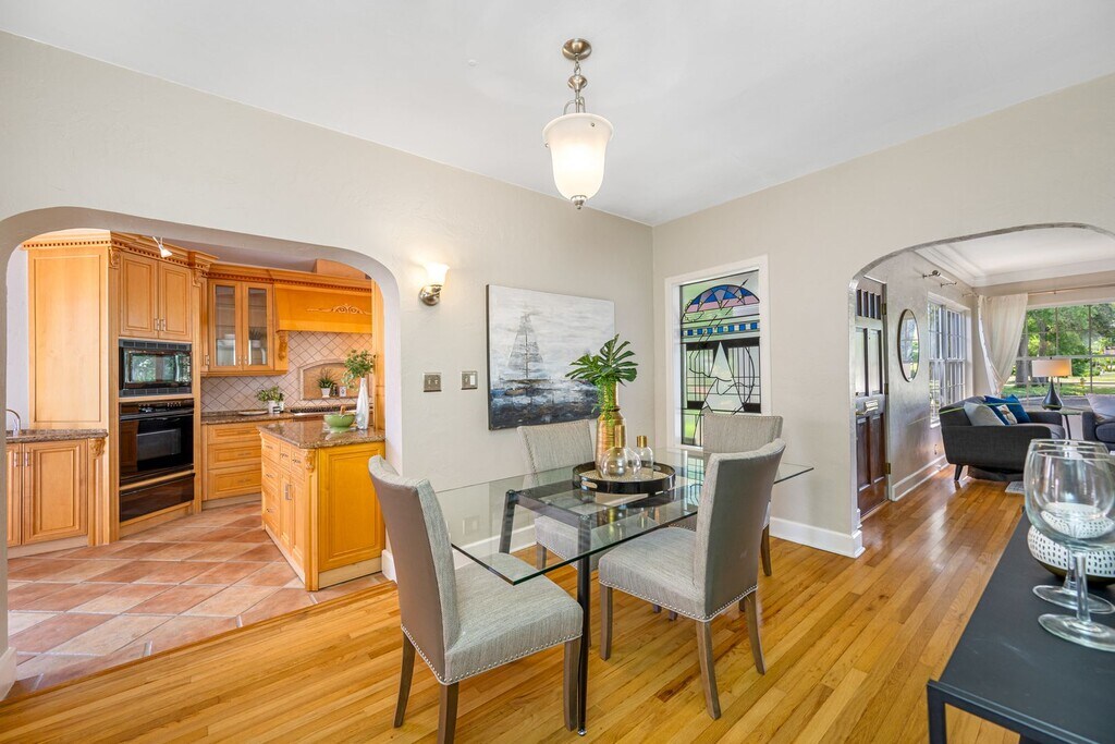 Discover the allure of this enchanting residence situated in the heart of Historic Granada Terrace in the sought-after Old Northeast neighborhood. Nestled on a meticulously landscaped lot, this block home exudes pride of ownership with its impeccably maintained exterior and interior spaces. Spanning approximately 2,300 square feet, this property boasts three bedrooms, three full bathrooms, a one-car garage with a parking pad, alley access, Anderson windows, a tankless water heater, ample storage space, and much more. Upon approaching the home, you'll be greeted by its charming curb appeal and a delightful brick walkway leading to the front entrance. Stepping inside, you'll immediately notice the beautifully preserved original oak flooring, creating a warm and inviting ambiance. The living room showcases many windows that offer captivating views of one of Granada Terrace's picturesque park circles, with glimpses of the waterfront in the distance. Located at the rear of the house, the separate family room provides an ideal space for entertaining guests. The gourmet kitchen is a true chef's dream, featuring an eat-in area, a movable granite island, a wet bar, granite countertops, and a high-end appliance package that includes a Dacor oven, Thermador gas top stove with a griddle and grill, Bosch dishwasher, and a Sub Zero refrigerator. The backyard showcases lovely yet low-maintenance landscaping, a custom outdoor shower, and a wood deck that is perfect for hosting gatherings with family and friends. Additionally, this property is just steps away from the Coffee Pot waterfront, providing easy access to outdoor recreational activities. Conveniently located near vibrant Downtown St. Petersburg, shops, dining establishments, museums, the St. Pete Pier, Renaissance Vinoy Resort, and much more, this home offers a desirable lifestyle with endless entertainment options. Don't miss the opportunity to make this charming residence your home.