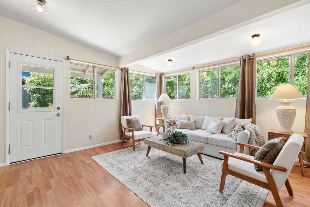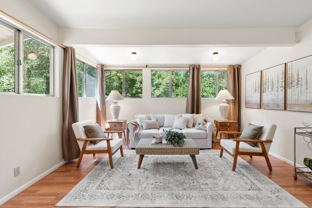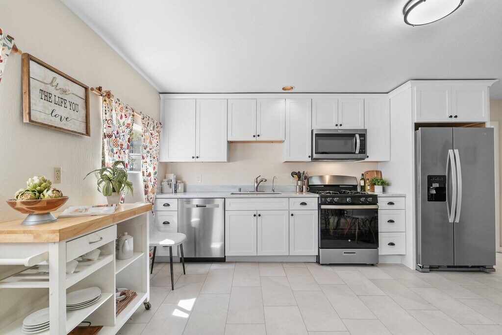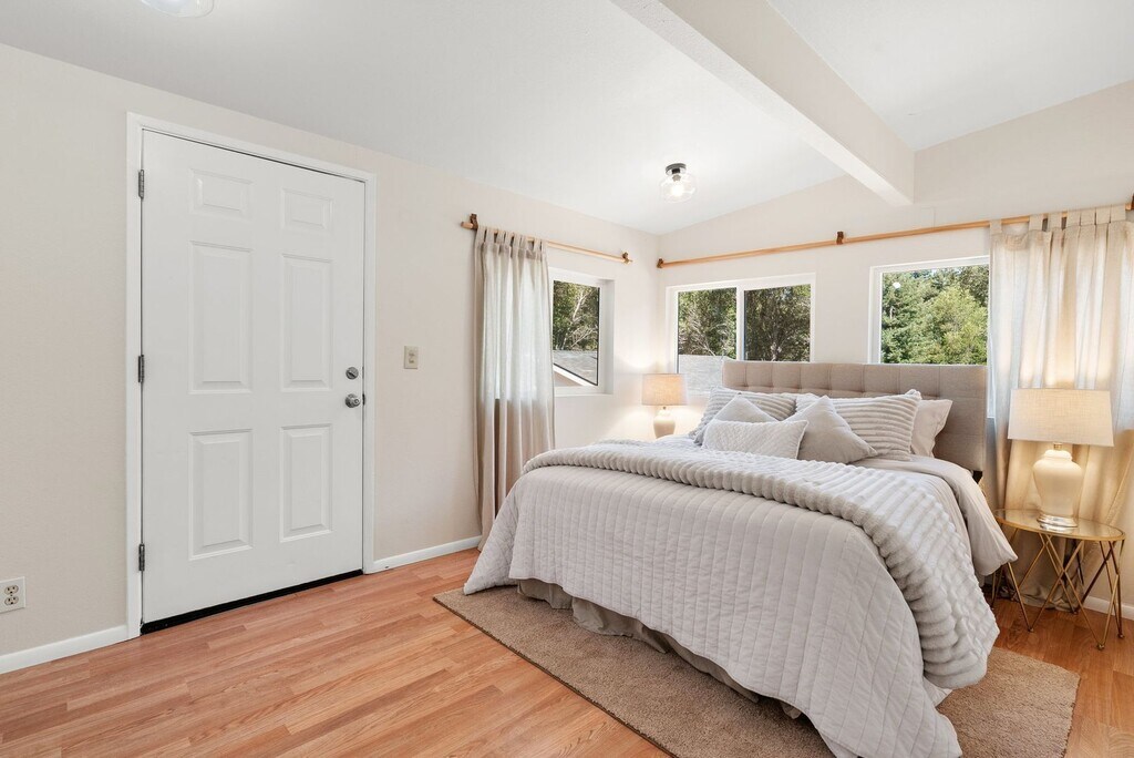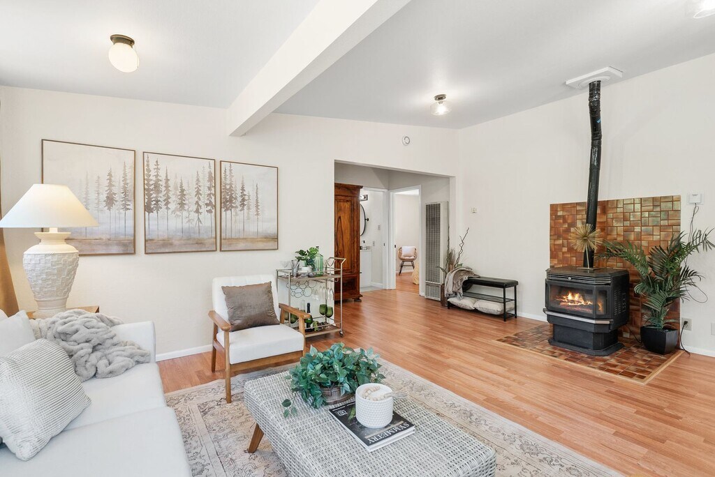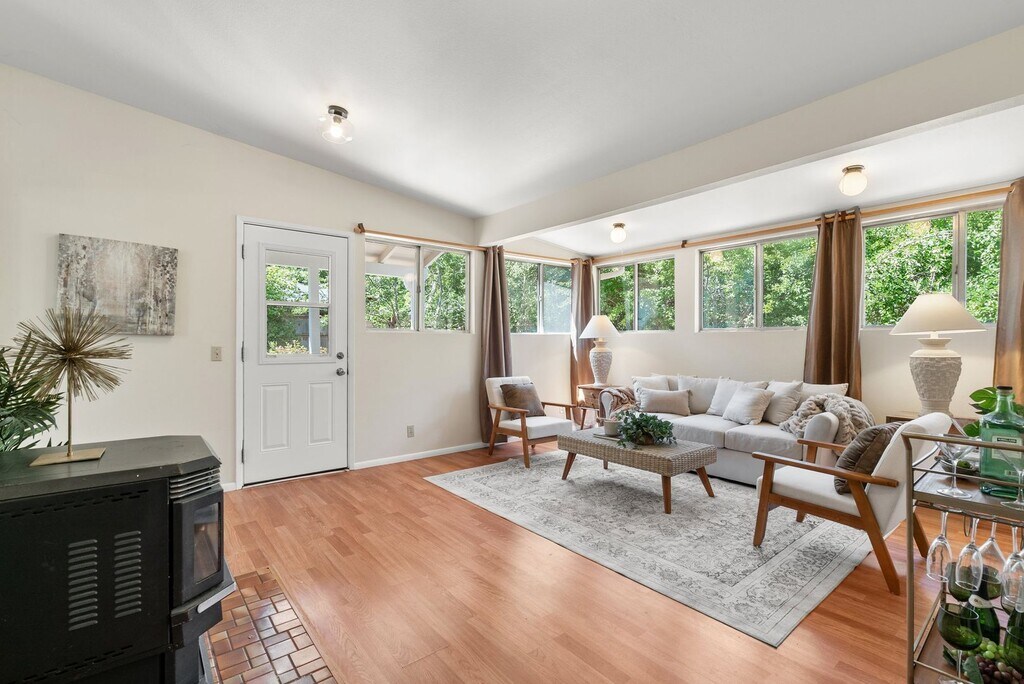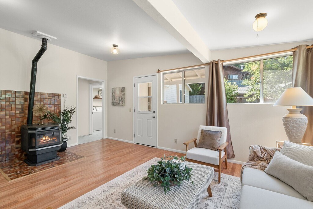 Enjoy the perfect mix of mountain serenity and modern comfort in this recently updated 1,263 sq. ft., 3-bedroom, 2-bath home, located on a shared property just one mile from town. Nestled among the redwoods yet blessed with full sun, this home offers a peaceful retreat with everyday convenience. Inside, you’ll find a brand-new kitchen with stainless steel appliances, gas range, and dishwasher, along with fresh paint throughout. A washer and dryer are included, and the home is equipped with solar to help keep utility costs down. There is a wood pellet stove to cozy up to in the colder months. Two of the bedrooms are spacious and well-suited for full-time living, while the third is ideal as a guest room or home office with its own generously sized attached bathroom. The property’s unique setting combines the beauty of the redwoods with open, sunlit spaces, offering both privacy and connection to nature. With its updated finishes, energy-efficient solar, flexible floor plan, and unbeatable location close to shops, dining, and local amenities, this home is an excellent long-term rental opportunity. Term Lease CATS ACCEPTED Landscaping Included No Utilities Included
