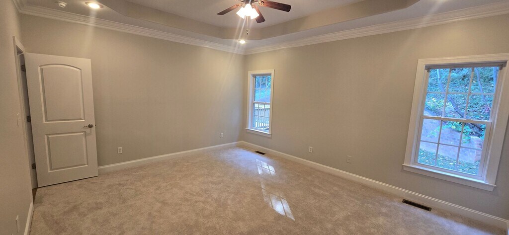 Wonderful home near new hospitals, shopping and highway. Open floorplan with cathedral ceiling. Gas fireplace, wired for surround sound system. Formal dining room and very large breakfast/dining area in kitchen. Primary on the main, 2nd suite upstairs. Freshly painted, new carpet and hardwoods. New private deck on back of house.