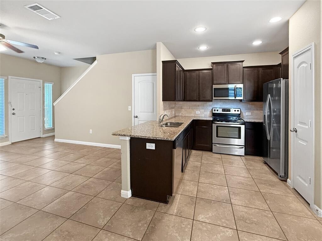 Well-maintained home available for immediate move in! This 3 bed/2.5 bath home has open concept kitchen/living/dining area perfect for entertaining, The kitchen features granite counters w/ breakfast bar and stainless steel appliances. Primary suite has walk in closet & walk in shower. Fenced yard and garage. Enjoy the neighborhood amenities: walking trails, playgrounds, community pool & more! Close to Super Target, Costco, Home Depot, and tons of bars and restaurants. Easy access to I-35 & 45.