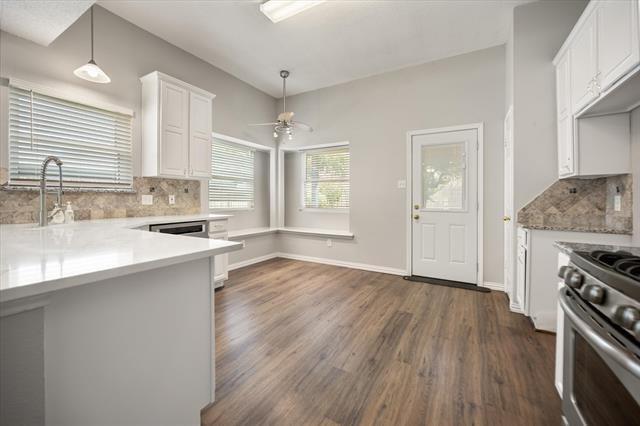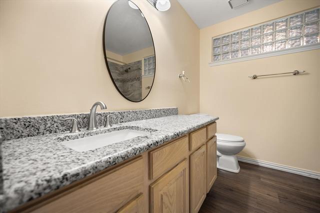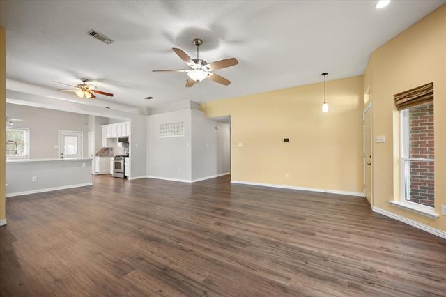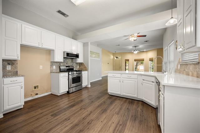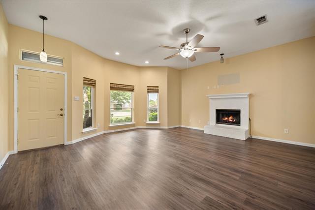 Delightful updated single-story brick home in the well-established High Chaparral neighborhood in Keller. This charming residence offers excellent curb appeal with beautifully landscaped front and back yards. Inside, the thoughtfully designed floor plan maximizes both comfort and functionality—perfect for everyday living and entertaining. The inviting front entry opens to spacious living and formal dining areas. The main living room features a white brick fireplace and a bay-windowed sitting area filled with natural light. The gourmet kitchen boasts crisp white cabinetry, new countertops, and stainless-steel appliances. A cozy breakfast nook with built-in window seating overlooks the backyard. The private primary suite includes a relaxing soaking tub, separate step-in shower, dual sinks, and a walk-in closet with a custom storage system. Step outside to enjoy the covered wood deck and large fenced backyard—ideal for gatherings or quiet evenings. Excellent location conveniently located near Keller’s parks, shopping, dining, entertainment, walking trails, and much more. 3D Walkthrough available on Zillow