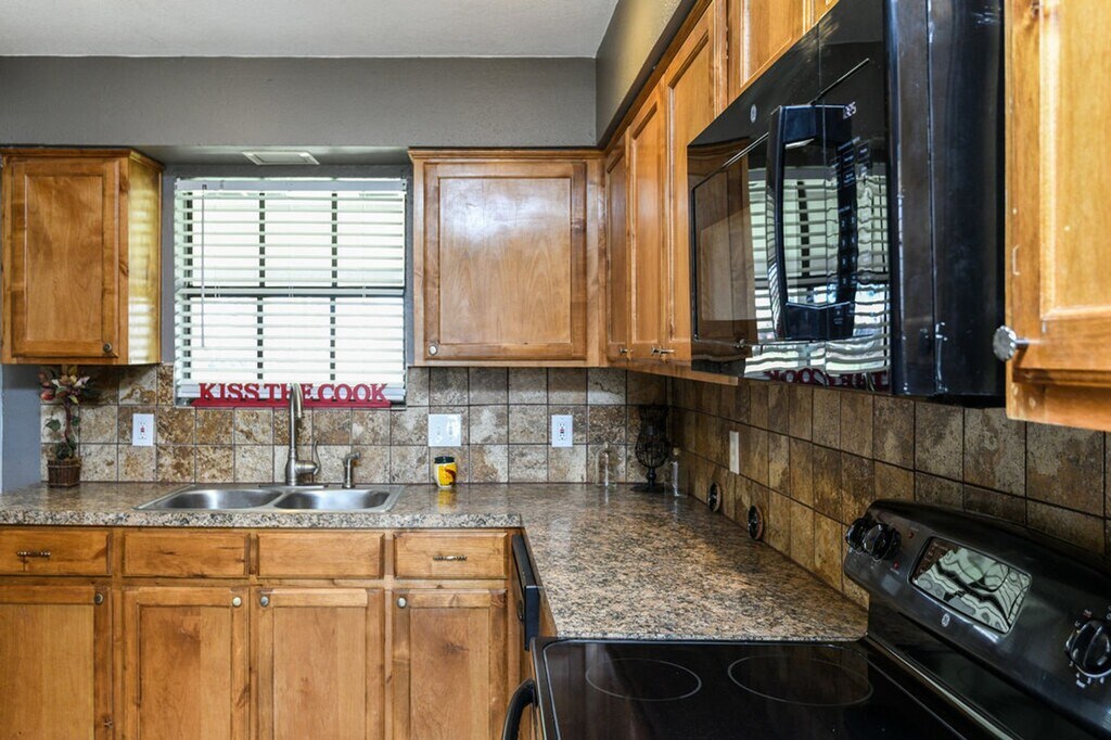 Move in Ready! Brick home 3 bedrooms, 2 bath, 2 car garage. All bedrooms are Large. Master bedroom is HUGE and master bath features Dual sinks & a tiled stand alone shower. Big Living room, with Fireplace. 2 car garage. Less than a block from Elementary school, Red Oak ISD. HUGE backyard to play in, or entertain, with covered patio.