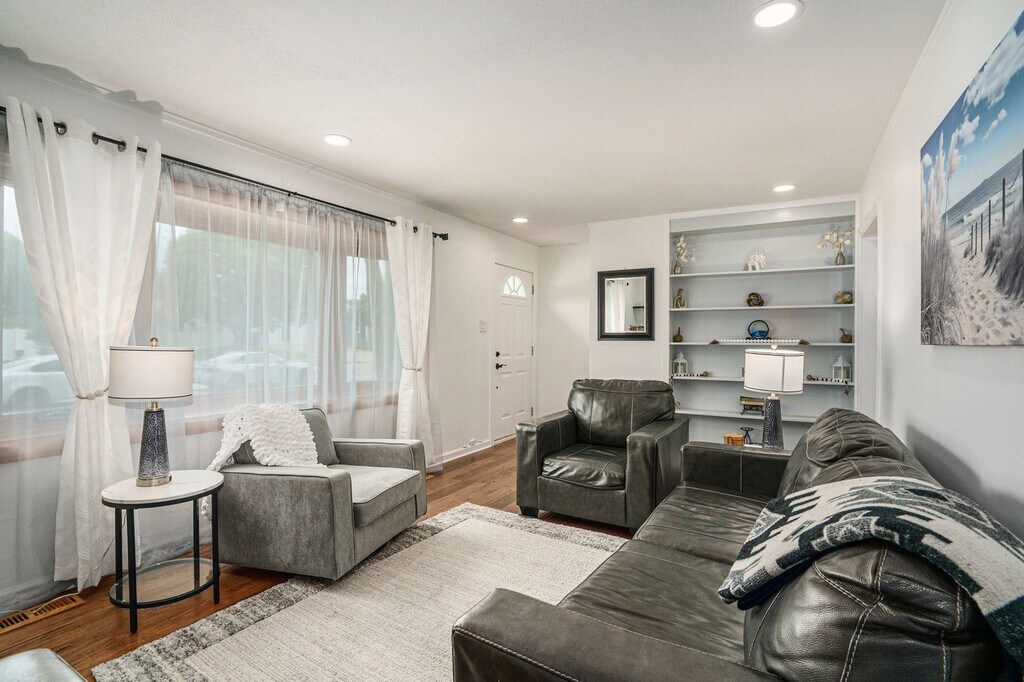 Feel at home in this 3-bedroom cottage near Lake Michigan, offering a full bathroom and a half bath for your convenience. The lake is less than a mile away, making this a perfect escape. This beautifully designed cottage features a large, welcoming living space with an eat-in kitchen and island. A bonus room in the back provides an additional area to relax. The bedrooms and bathrooms are located to the left side of the property. Enjoy the fenced backyard with seating, a grill, and space to play. Washington Park Beach and Zoo are located less than a mile away, with other beach areas within walking distance. The South Shore Train Station is approximately 3 miles away. This home does not accommodate pets. Smoking is prohibited in the property. Registration Number: MCSTR-2025-076 [SI]