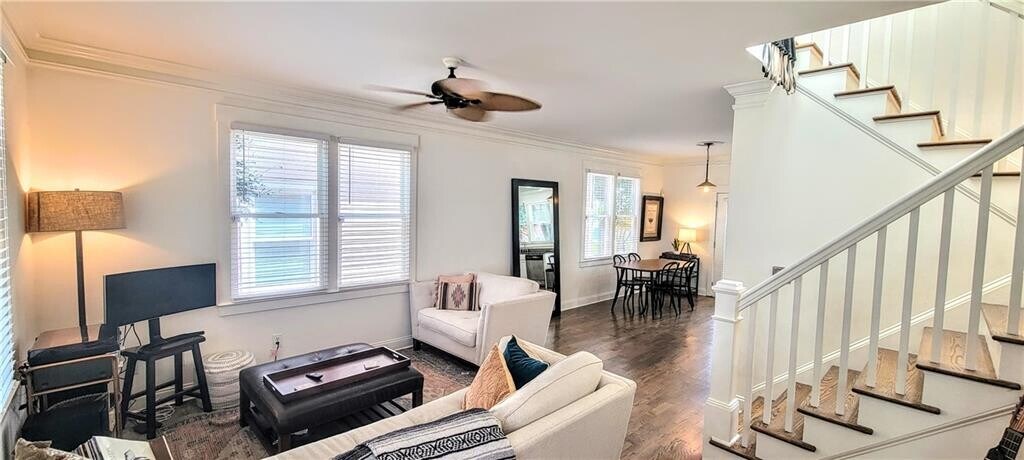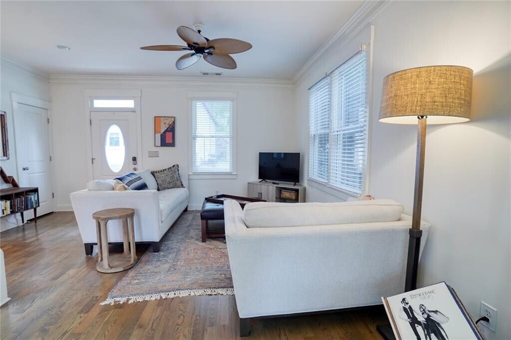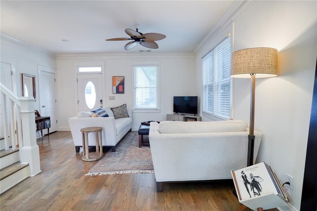 Super cute and charming Row Style bungalow home in popular Old Fourth Ward and the Very Best of Beltline Living! This home is situated in an HOA with other similar homes around a central courtyard and off-street dedicated parking. Classic 2-story cottage just steps to Atlanta Beltline Eastside Trail + Ladybird,Rathbun’s Steak,KSM,SPX Alley,+ Inman Quarter. This home is the perfect comfortable space for your mid term lease. The home is provided FULLY FURNISHED.
