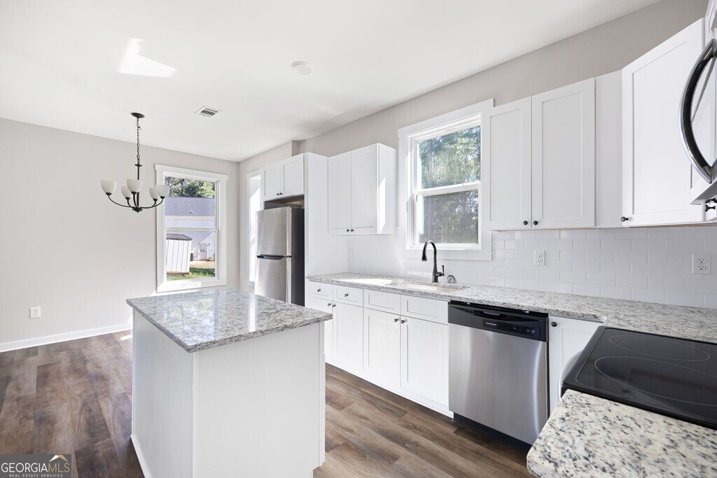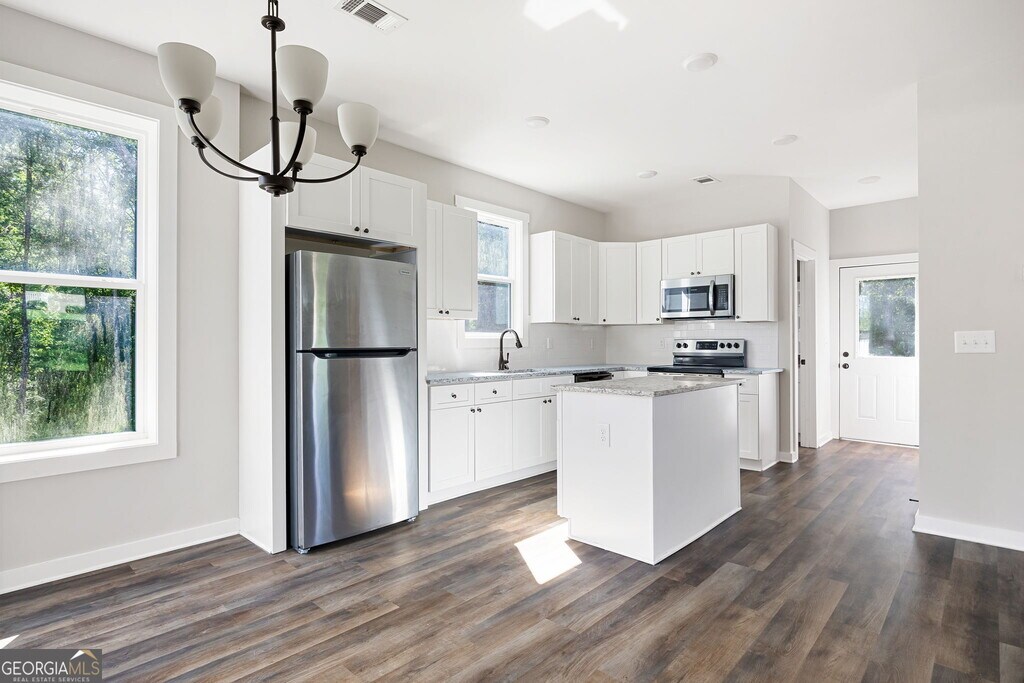 Step inside this Cedartown charmer - a 2022 build that still has that new house smell and all the modern touches you've been dreaming of! CEDARTOWN - BUILT 2022 - 3 BEDS - 2.5 BATHS - STEPLESS ENTRY - TWO-STORY - 1456 SQFT - 0.30 ACRES - TOTAL ELECTRIC - STAINLESS APPLIANCES - GRANITE COUNTERTOPS - LVP FLOORING THROUGHOUT - LARGE KITCHEN ISLAND - STYLISH BARN DOOR - DOUBLE VANITY PRIMARY ENSUITE - PUBLIC WATER & SEWER - NO HOA This two-story home offers 3 bedrooms, 2.5 bathrooms, and a stepless entry for easy access. As you walk in, you're greeted by an open-concept living space with gorgeous LVP flooring, neutral tones, and plenty of natural light. The living room flows seamlessly into the dining area and the kitchen, making it ideal for gatherings. The kitchen is a real highlight - stainless steel appliances, granite countertops, crisp white cabinetry, and a large island that's perfect for prep work, meals, or entertaining. Upstairs, you'll find three spacious bedrooms, including a double primary ensuite for added comfort and convenience. Each bath is finished with granite counters, modern fixtures, and a clean, timeless design. Step outside and enjoy a manageable 0.30-acre lot with public water and sewer - all with no HOA to worry about. Plus, this home is total electric, adding to the efficiency and ease of ownership. At 1,456 square feet, this home gives you the right amount of space without overwhelming upkeep - perfect for anyone looking for a modern, move-in-ready option in Cedartown. Don't let it get away! Make us an Offer today!