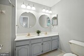 Move-in Ready Condition! One of the largest models in Aspen Park community, this home is located on a cul-de-sac and features a fenced rear yard with a patio and deck. The entry foyer includes a half bath and leads into the eat-in kitchen with a bay window, granite countertops, and stainless steel appliances. A pass-through opens the kitchen to the dining area and spacious living room. The upper level offers a primary suite with vaulted ceiling, walk-in closet, and full bath with dual vanities. Two additional bedrooms are generously sized and share a second full bath. The lower level includes a family room with level walk-out, half bath, and large laundry/utility room with windows. The community provides a playground and common area just a block away. Conveniently located near Route 100, Route 2, I-97, and I-695, with easy access to Fort Meade and NSA.