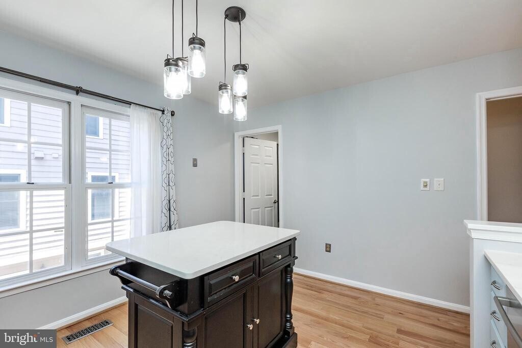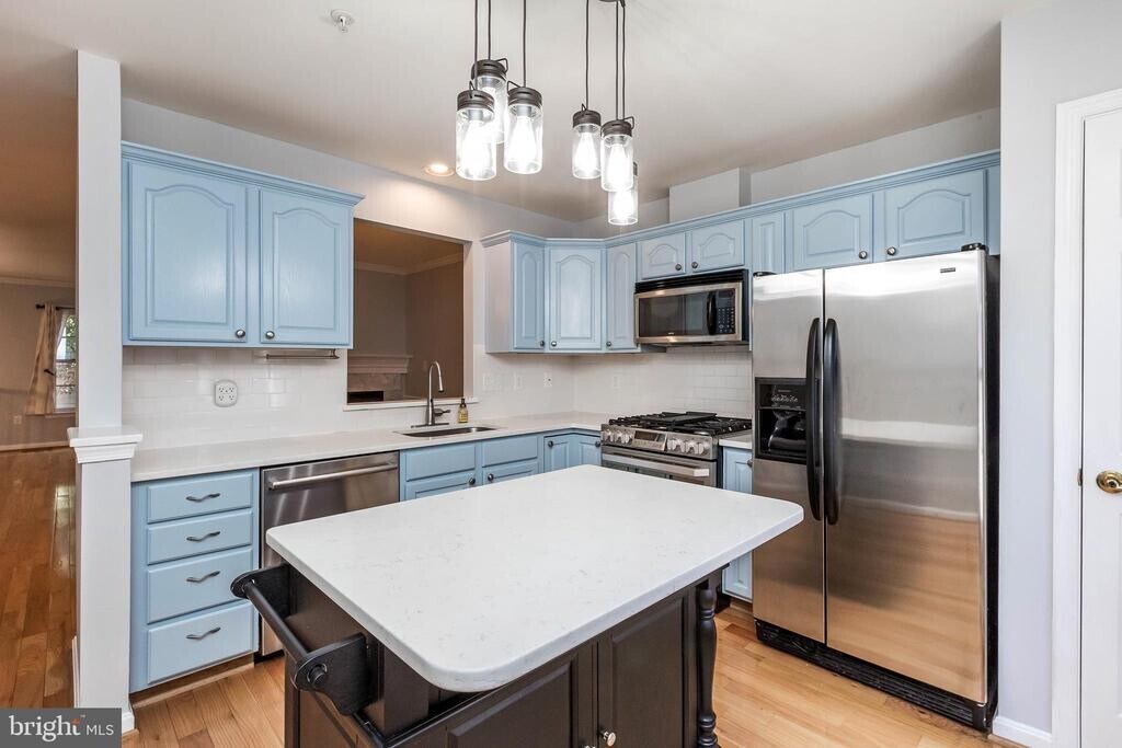 Welcome to this sun-drenched, gorgeous townhouse in the sought-after Kentlands neighborhood! This home offers 4 bedrooms, 3.5 bathrooms, a rear-entry garage, and a charming front stone patio. The entry level includes a versatile 4th bedroom or home office with a full bathroom. The main level features a spacious, open floor plan highlighted by a cozy three-sided fireplace that warms the entire living space. The updated kitchen boasts quartz countertops, an island, and stainless steel appliances, while beautiful hardwood floors span the first and second levels. Upstairs, the primary suite offers a spa-like bathroom with separate vanities and a walk-in shower. This home has been beautifully prepped and is ready for its new owners to enjoy the community’s rich amenities, including a pool, clubhouse, tennis courts, basketball courts, tot lots, and more. Everything you need is just steps away—grocery stores, restaurants, Lowe’s, post office, Starbucks, movie theaters, and more. All this, and less than 15 minutes to Shady Grove Metro and I-270.