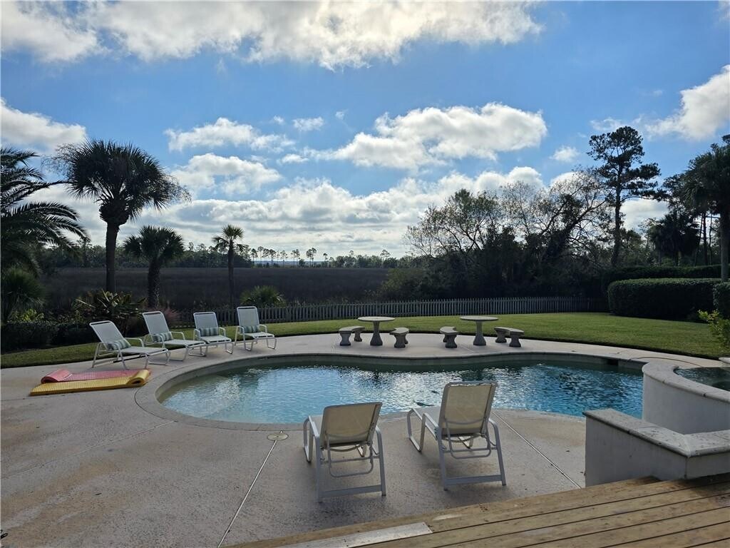 Available now, short or longer term rental partially furnished. Stunning, custom built marsh front home featuring 4 car garage, in ground pool with spillover hot tub & cabana overlooking the marsh. Chef kitchen with top of the line KitchenAid Architect Series appliances, 6 burner gas range & double ovens, copper farm house sink and custom made copper hood by HGTV artist Mark Wentz, music room, formal & casual dining & breakfast bar, coffee station with pantry, leather & copper trimmed open shelving, master suite with champagne jetted bathtub that lights up & separate glassed shower, water closet, double vanity, double walk in closets, travertine stone flooring throughout except 2 luxuriously carpeted guest bedrooms. Most lighting on dimmers including pool light. $ bedrooms and 4 full bathrooms in the main house and an above detached garage apartment with full bath. Weekly pool & lawn maintenance, electricity ($600 cap), water & gas included with rent, pet friendly with a $350 per pet fee. No smoking. Available for short term rental 6 months or less or up to 12 months. Partially furnished, can be fully furnished. No security deposit required.