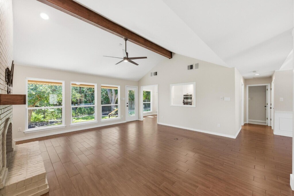 Welcome to this beautiful one-story home offering comfort and style in a quiet Lakeway neighborhood.Home Highlights:-Classic brick exterior with side-entry garage and well-maintained front yard.-Updated with new HVAC, windows, interior lighting, and fresh interior/exterior paint.-Spacious living area with vaulted ceiling, cozy fireplace, and access to the covered deck; connects to a formal dining area-Primary suite with walk-in closet, en-suite bathroom with dual vanity, and deck access.-Modern kitchen with breakfast bar, granite countertops, tile backsplash, and ample cabinet space. -Covered patio and landscaped yard shaded by large oak trees.Location Highlights:-Situated in the scenic Lakeway community with easy access to FM 620 and TX 71.-Close to shopping, dining, entertainment, and Lake Travis recreational amenities.-Zoned to the highly rated Lake Travis ISD.Tenant pays utilities. Pets allowed. Absolutely no smoking. Professionally managed.