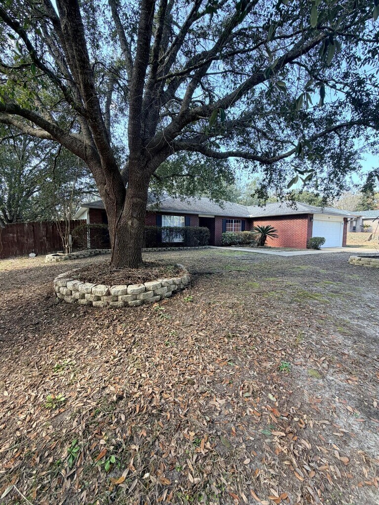 Escape to your dream rental in south Crestview! This stunning 4-bedroom, 2-bath split floorplan is a rare find, featuring NO CARPET and a spacious lot. Enjoy cooking in the kitchen with beautiful granite countertops, an island perfect for baking, and a seamless flow into the large living area with electric fireplace and vaulted ceilings. Unwind in the master bathroom's soaking tub and take advantage of the walk-in closet's ample storage. With a dining area, large deck, and plenty of space for everyone, this home is great for families or professionals looking for comfort and relaxation.