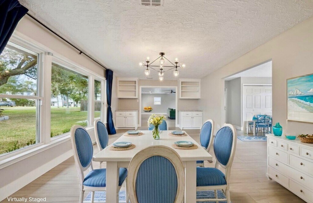 HONEY STOP THE CAR! Your Waterfront Sanctuary Awaits! Nestled on 3/4 acres in Bayou Bend,entering the circular drive You are welcomed by the majestic trees dripping with Spanish Moss framing this extensively upgraded 4 bedroom 3 bath home. Detached 2 car garage,boat is allowed! The 1st floor Primary bedroom with a spa 5 piece ensuite bath is a dream! Another bedroom down stairs is next to a full bath. There are two massive bedrooms upstairs that share an upgraded bathroom. The first floor continues with a high end kitchen opening to the ample breakfast room. All appliances are included! The dining room and den with a wood burning fireplace are expansive! But the WOW! is the outside entertainment area: towering covered patio leading to a heated salt water pool with hot tub and fountains.Then there is the rest of the large back yard leading to Dickinson Bayou,I will let the pictures do the talking! Midway between Houston & Galveston,easy access to I -45. Dickinson is the place to Be! MLS# 72562655