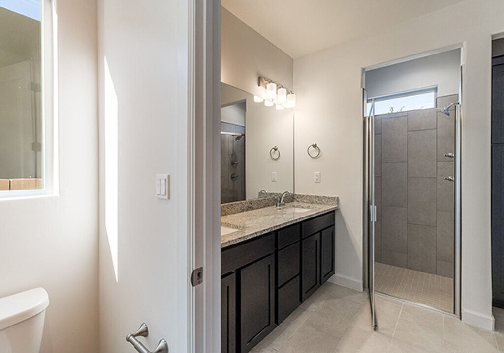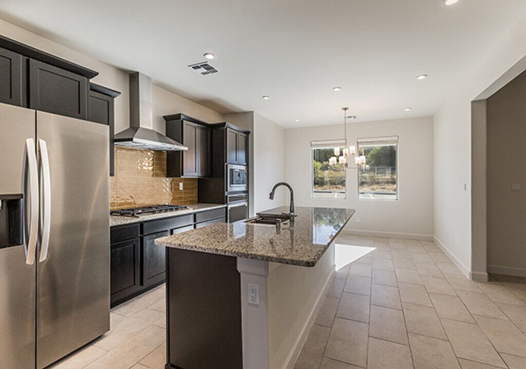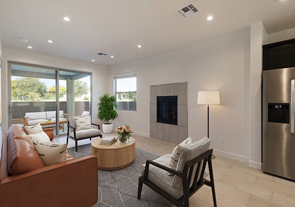 New community centrally located close to the Plaza and adjacent to biking and walking paths. Each home in Cerro del Norte will be a unique plan designed specifically for its lot. This two-story, three bedroom home has a great open floorplan with glass sliders that open to a covered back patio. The primary suite is on the first floor and has a walk in closet, separate commode room, dual sinks, and a spacious shower. Laundry room is conveniently located on the first floor. The kitchen has granite countertops, a large island, pantry, and a full LG built in appliance package which includes SS gas cooktop, built in oven/microwave, SS vent hood, multicycle dishwasher, and side-by-side refrigerator. Floors in the kitchen, entry, laundry room, dining area and bathrooms are tiled. Front yard is landscaped and includes irrigation. Energy efficient LED lighting throughout. Garage door opener and much more.