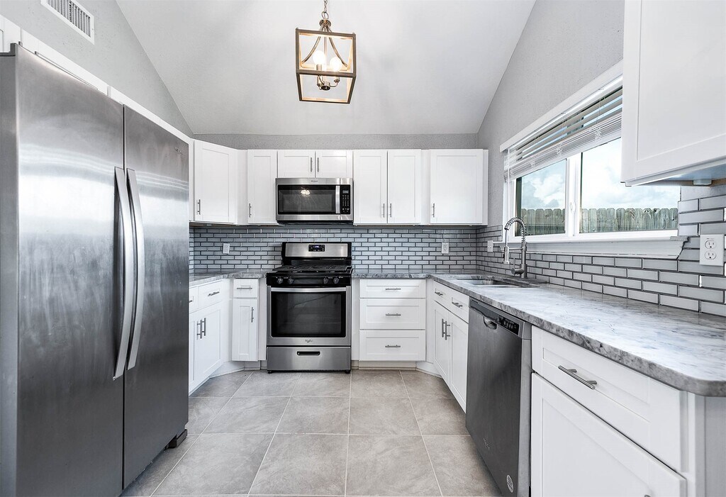 Gorgeous Updated 2-Story on Oversized Corner Lot! This stunning home offers nice curb appeal & fully updated interior,move in ready. New roof (2021) & durable hardy plank siding,it’s designed for beauty & low maintenance. Step inside to an open layout with laminate & tile flooring downstairs,2021 carpet in all bedrooms. Primary suite is conveniently located on the main level,features 2 spacious closets,while the secondary bedrooms are nicely sized. Every bathroom has been completely renovated,including new bathtubs. Chef’s kitchen has newer cabinets,granite countertops & stainless steel appliances—including the refrigerator. NEW WINDOWS bring in abundant natural light. Outside,you’ll find a spacious backyard with no back neighbors. Covered patio with dining table & grill for your enjoyment. Ideally located near shopping,dining,& major freeways,this home boasts top-rated Katy ISD schools within walking distance. This one checks all the boxes—don’t wait,it won’t last long! MLS# 64322330