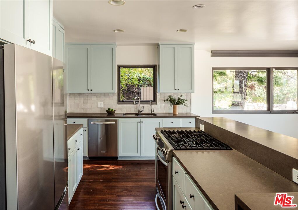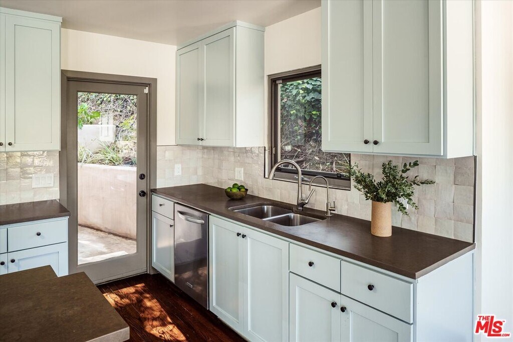 Situated on one of the most coveted streets in Moreno Highlands, this Mid-Century gem offers privacy, stunning views, and effortless access to the very best of Silver Lake living. Step inside to find impeccably designed living spaces, and walls of glass that frame unobstructed vistas spanning from the Silver Lake Reservoir to the snow-capped San Gabriel Mountains. The home's open, airy floor plan is bathed in natural light, and seamlessly connects the living room, dining area, and kitchen, all of which look out to expansive, verdant views. The sun-kissed kitchen is a chef's dream, featuring a huge center island, ample countertop and cabinet space, stainless steel appliances, and outdoor access for al fresco dining on the home's shaded back patio. The spacious primary bedroom also opens to the lovely outdoors, and boasts a large walk-in closet, and a beautifully done en-suite bathroom. The well-appointed second bedroom offers a glimpse of the glistening reservoir, and the home's second bathroom features a soaking tub. Additional highlights include newly finished hardwood floors throughout, lush native plantings, and a 2-car garage with extra storage. This is a rare opportunity to live in one of Silver Lake's most desirable pockets, just moments away from all of the incredible shops, restaurants, and markets that this vibrant neighborhood has to offer, as well as the nearby Silver Lake Reservoir path, dog park, meadow, and more. Located within the Ivanhoe Elementary School District. This home places you at the heart of the neighborhood while feeling like a private sanctuary above it all. MLS# 26635165