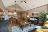 This modern FULLY FURNISHED 2 bedroom condo is centrally located in the Riverstone village. It features luxury touches including vaulted ceilings and a spacious kitchen. This condo is steps away from unique dining experiences, convenient shopping, movie theatre, parks, trails and so much more! Only 5 minutes to downtown! The first bedroom includes a king sized bed, designated work space, TV, large walk in closet, en-suite master bathroom and a walk in shower. The second bedroom includes a queen bed, closet, TV, and a detached bathroom. Washer and Dryer in unit. Free Underground parking. In addition to your own private outdoor patio, there is also a community patio for entertaining with tables, BBQ, and outdoor furniture! Utilities included in rent: WSG, internet Due upon signing: First months rent and deposit First months rent and deposit due at signing, No pets allowed. No smoking allowed. Unit is available until June 1st, 30 day minimum.