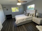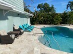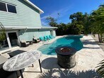 Bring your boat, there is 50 feet of dockage available in this furnished 2/2 house rental. No fixed bridges. Marina is close by. Close to downtown and the beaches, this home is two stories. Newer flooring and updated kitchen. The home also has an updated diamond bright heated pool with saltwater system. Convenient to everything and excellent where you can easily turn your vessel. Mirror polished floors on ground level and three large TV's. High style furniture with living room sofa bed. Bedrooms equipped with writing desks. Metal Roof. Great opportunity.