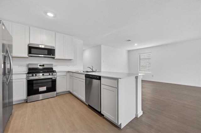 Welcome to this beautiful new home in the desirable Highpointe Ranch community in Aubrey. This single-family residence offers 4 spacious bedrooms, 2 full bathrooms, and a bright open-concept layout designed for comfortable everyday living. The peninsula-style kitchen features modern quartz countertops, stainless steel appliances, and flows seamlessly into the living and dining areas, creating a warm and inviting space filled with abundant natural light. Step outside to relax in your private backyard. Highlights include luxury vinyl plank flooring, carpeted bedrooms, energy-efficient features, central heating and cooling, high-speed internet included at no extra charge, and a two-car garage. This community offers both charm and convenience, with quick access to nearby schools, dining, and major commuter routes. This home provides modern comfort in a fast-growing North Texas community seeking space, style, and easy living.