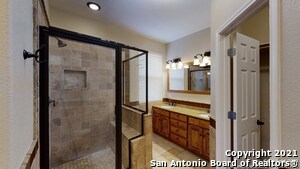 Spacious 5-Bedroom, 3-Bath Home in Prestigious Stone Oak Gated Community. Discover this stunning 5-bedroom, 3-bath home in one of Stone Oak's most desirable gated communities! Offering two master suites-one on the main level and one upstairs-each with its own full bath, this home is perfect for multi-generational living or added privacy. The well-sized bedrooms and large closets provide ample storage space for the whole family. The open-concept kitchen boasts plenty of cabinets, expansive granite counter tops. A must see Home!!!