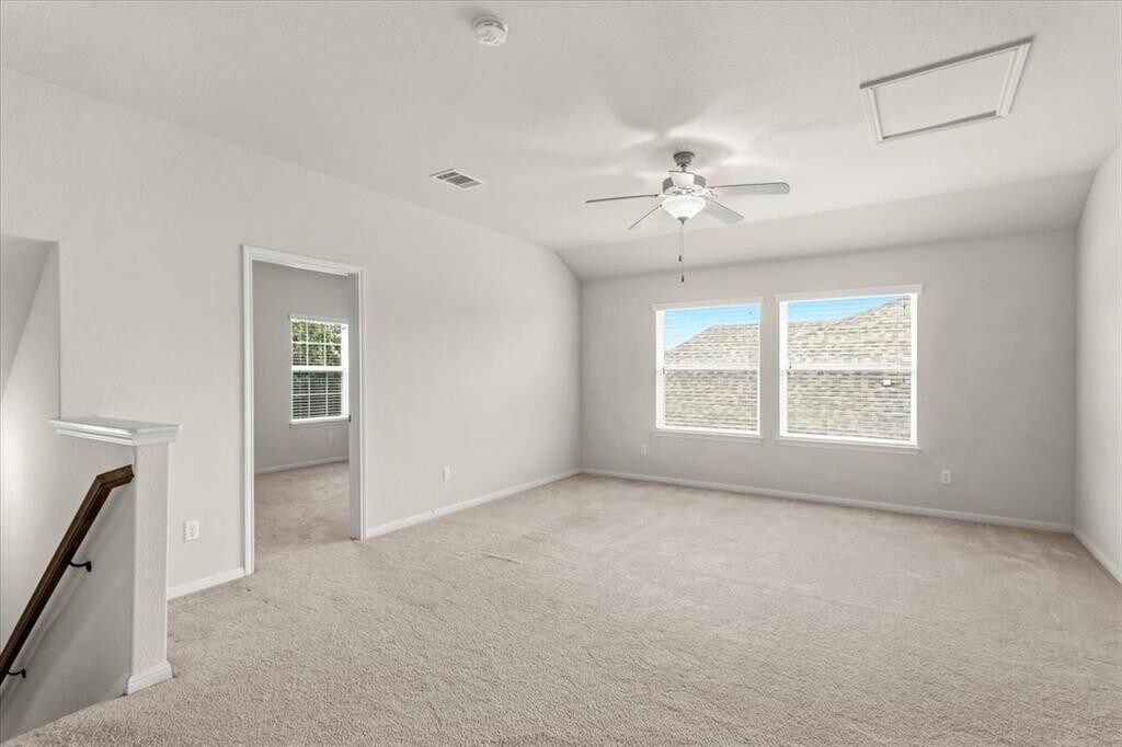 Welcome to this beautifully designed 4-bedroom, 2.5-bath home offering a functional layout, modern comfort, and plenty of room to spread out. Primary (master) bedroom suite on the first floor for added privacy and convenience. Three generously sized bedrooms upstairs with a shared full bath. Large second living area upstairs perfect for a game room, media room, or kids’ retreat. Flexible office/formal dining room downstairs to suit your lifestyle. Open-concept living area with abundant natural light. Well appointed kitchen with ample cabinets, pantry space, and a breakfast area. Guest half bath on the main level.
