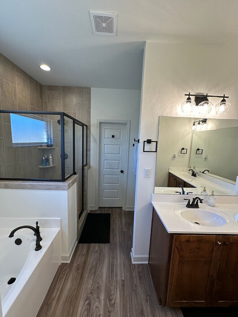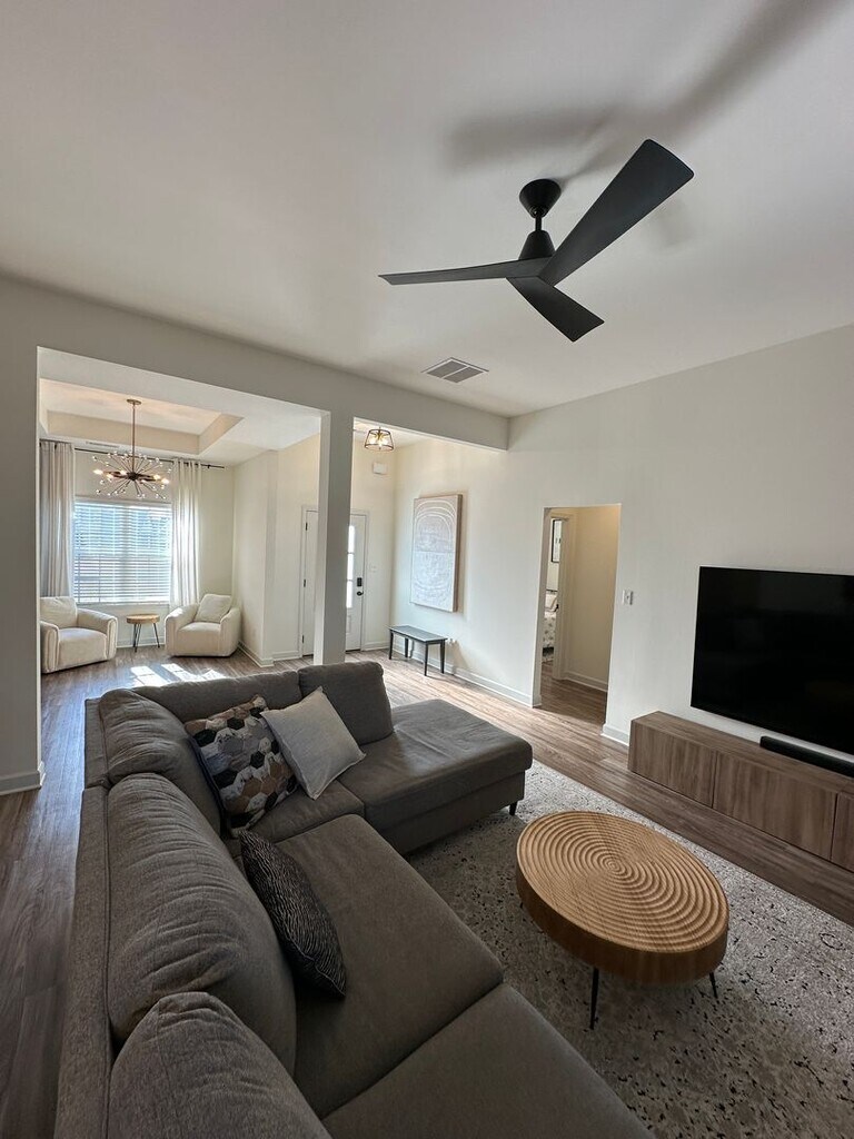 Like new 4 BR/ 2 BA in Pinewood. Luxury vinyl plank flooring down. Open floor plan features living room w/fireplace, formal dining room/flex room, spacious kitchen w/ breakfast bar, granite & stainless steel appliances (waher/dryer remain as-is). Primary suite w/ spa bath - 2 sinks, walk in shower, tub & walk in closet. 4th BR/game room is up. Will be fenced and is available for January move in. Must have 24 hr notice to show. Must qualify per CLPM including minimum 600 credit score. Pets are welcome with owner approval and applicable fees.
