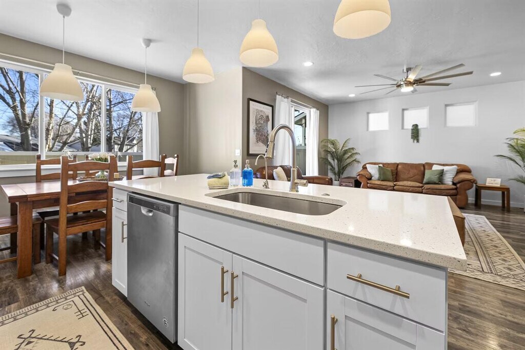 Feel at home in this modern, 2-story home in Nampa. This single-family home offers 3 bedrooms, a good-sized living room, a large patio, and a backyard. This home features a fully stocked and equipped kitchen, an in-house washer and dryer, and smart TVs in every room. The master bedroom includes a large walk-in closet and a private bathroom. The professionally decorated space features unique furnishings and a warm ambiance. Driveway and garage parking are available. Located just 10 minutes down the road, this home offers a private fenced yard. Parking areas are quite small, and people with larger vehicles may sometimes find parking difficult. Includes fast Wi-Fi, a large desk in the master bedroom, and a small desk in the second room, making it ideal for remote work. [SI]