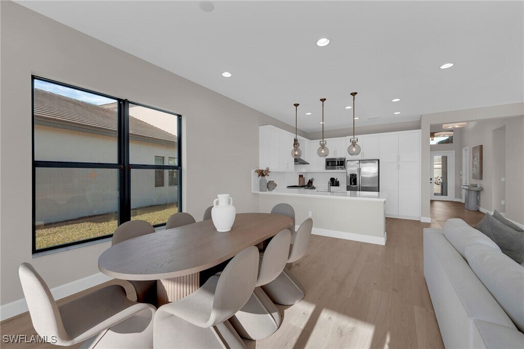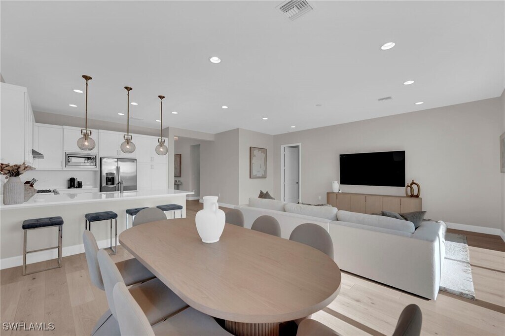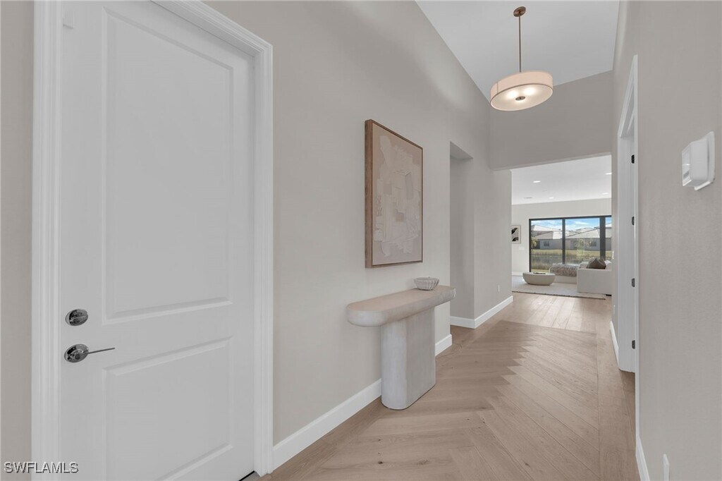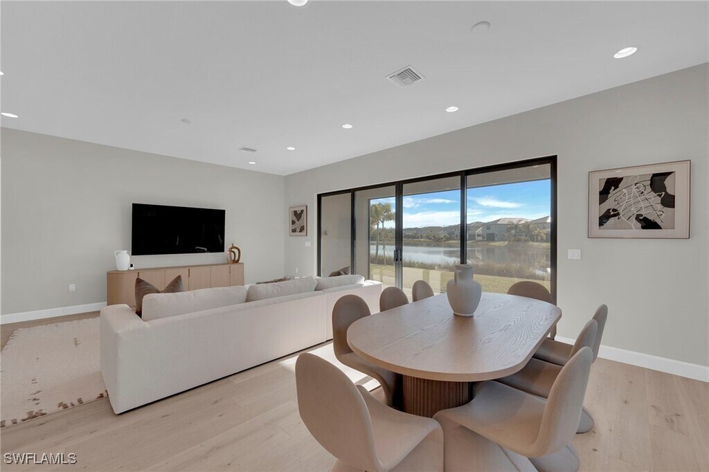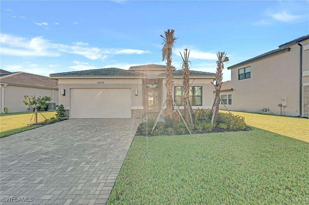 AVAILABLE IMMEDIATELY for annual rental,welcome to your waterfront dream home at 20534 Fair Oak Lane,RiverCreek,Estero! This modern Canyon model by GL Homes is a breathtaking residence in the coveted RiverCreek community. This immaculate 3-bedroom plus den,3-bathroom home showcases over $100,000 in premium upgrades,gas appliances,and gorgeous finishes throughout. Perched on a premium oversized water lot,this Florida luxury property offers spectacular sunrises and sunsets that turn everyday living into a resort-like experience. Step inside to discover a bright,open layout with highly sought-after soaring 10-foot ceilings and luxury tongue and hardwood flooring throughout with upgraded 5¼" wood baseboards (NO CARPET)! Entryway features wood flooring in a striking herringbone pattern,creating a modern and elegant first impression. Upgraded lighting brings warmth and ambiance to every room. At the heart of the home is a chef-inspired kitchen with premium quartz countertops,42" wood upper cabinets,and full stainless steel appliance package,including a GE® 24.9 cu. ft. side-by-side refrigerator,gas slide-in range,microwave,and multi-cycle dishwasher. A dual-compartment undermount sink with a pull-out faucet completes the space. The spa-like primary bathroom features European-style raised vanities with premium soft-close cabinetry,oversized shower,and rectangular undermount sinks. Secondary bathrooms mirror this design with hidden-hinge cabinetry,premium countertops,and tilework for a unified,upscale look. The 2-car garage includes coach lights and steel-reinforced concrete block construction. Additional conveniences include a separate laundry room with a heavy-duty washer and gas dryer,an energy-efficient gas hot water heater,and a seven-year dwelling warranty covering major structural elements. Impact windows throughout offer peace of mind during storm season and fully landscaped grounds with an automatic sprinkler system keep the outdoor space lush and low-maintenance. Enjoy peaceful moments on the screened patio overlooking tranquil water views and glowing Florida sunrises. RiverCreek offers an unparalleled lifestyle with its extensive amenities,the 12,000 square foot Clubhouse has an Indoor Sports Complex,Resort Style Pool,Fitness Center,Event Room,Catering Kitchen,Card Salon,Sports Lounge,Fire Pit,Playground,Splash Park,and Lighted Courts for Pickleball,Tennis courts,and Bocce,resort-style pool,state-of-the-art fitness center,kids pool,and cabanas. Just minutes to Hertz Arena,Miromar Outlets,Coconut Point,Gulf Coast Town Center,Florida Gulf Coast University,and tons of restaurants,bars,and grocery stores are just minutes away. Come explore the community,tour the amenities,and feel the lifestyle for yourself. Schedule your private showing today before it's gone!