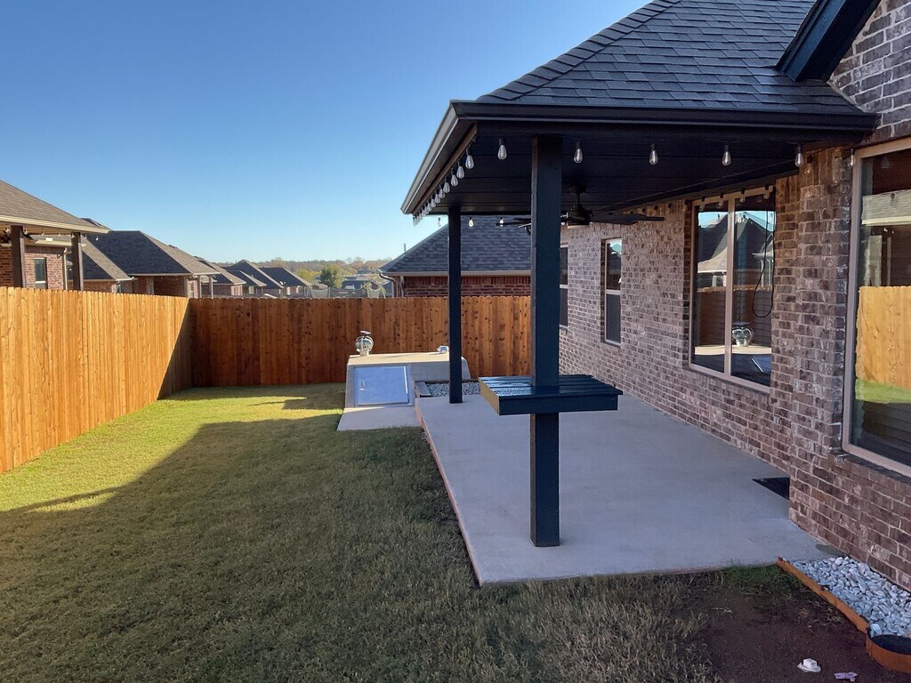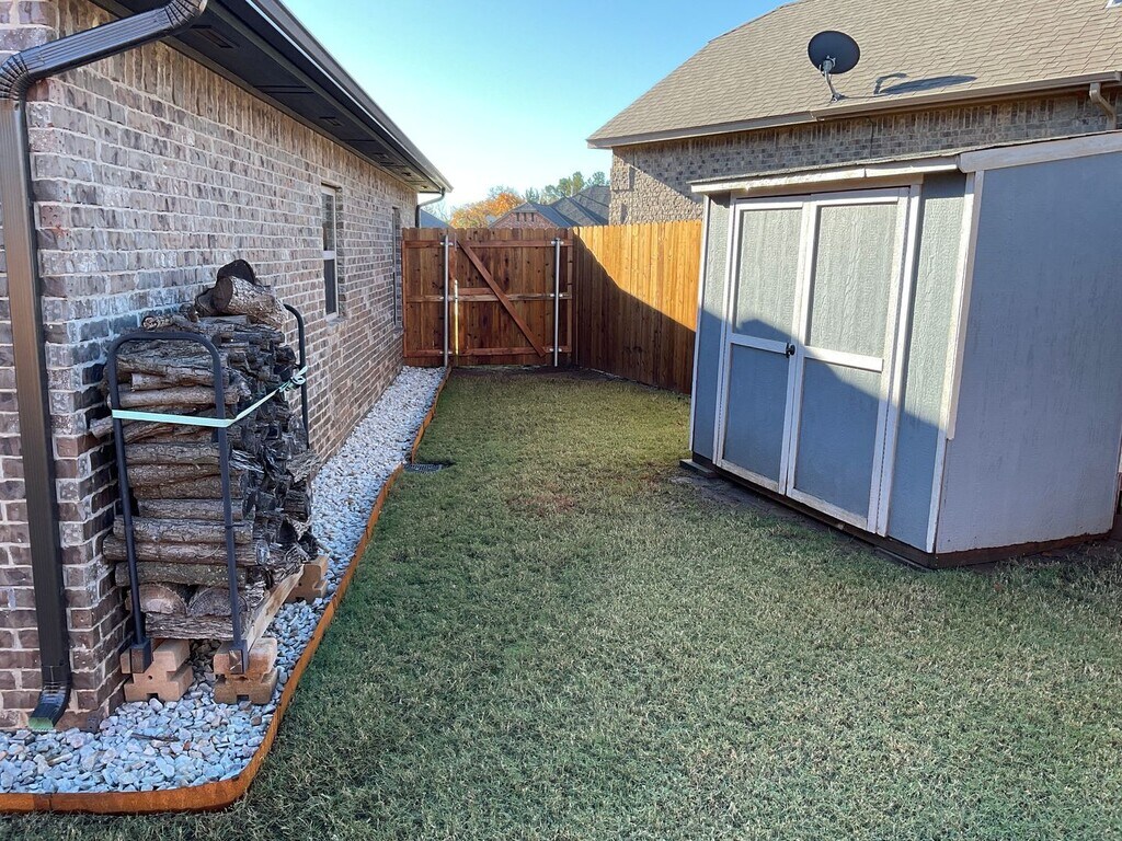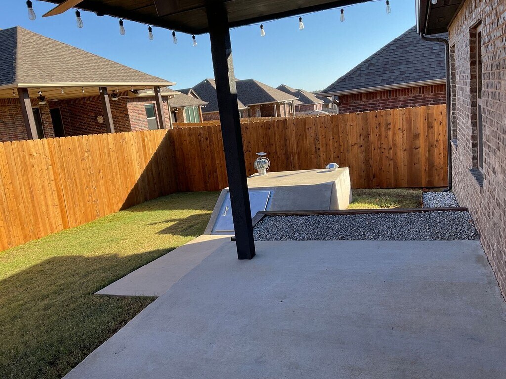 Welcome to this charming 3 bedroom, 2 bathroom home located in Harrah, OK. This house boasts a beautiful kitchen with granite countertops, a copper sink, built-in microwave, gas stove, and stainless dishwasher. The kitchen also features wood beams for added character. Cozy up by the gas fireplace in the living room or relax in the jacuzzi tub in the master bathroom. The master bathroom also includes a free-standing shower and walk-in closets. Enjoy the convenience of ceiling fans in every room with remote control. Outside, you'll find a storage building, covered patio, outdoor storm cellar, new stockade fence, fire pit, and external generator hook up. Don't miss out on this lovely home with all the amenities you need for comfortable living.