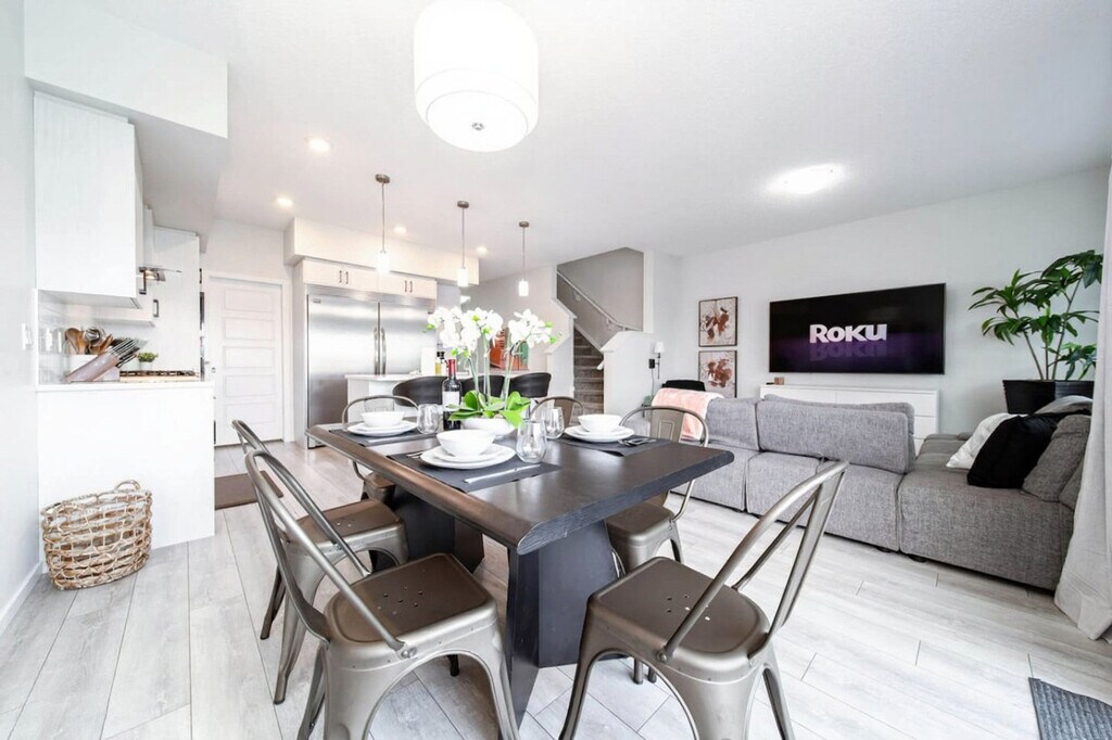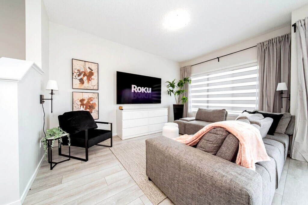 The advertised rate of C$4,544/month is the lowest available price, based on a 1 month(s) stay with a move-in date of April 9, 2026. Rates vary depending on the duration of stay, season, and other parameters. For exact pricing and additional pricing components, please visit our website and enter your desired move-in and move-out dates. The rate is applicable when billed upfront; it can be higher if billed in multiple payments. Feel at home in this stunning, modern 4-bedroom, 3.5-bathroom home minutes from West Edmonton Mall, perfect for families or business trips. This is truly the perfect hub for your stay in Edmonton. Inside, you can watch your favorite shows with access to Roku TV or entertain your friends and family with plenty of space outside on the patio and yard. The fully stocked kitchen features stainless steel appliances such as a microwave, fridge, and electric stove, along with glasses, mugs, dishes, and cutlery. You will also have access to a games room with its own Pac Man game and in-suite laundry equipped with a washer, dryer, detergent, iron, and ironing board. Parking options include free street parking around the home, indoor double car garage parking, and outdoor driveway parking. A pack-n-play can be provided for an additional fee of $150, subject to location and availability. Located in a peaceful, private neighborhood in west Edmonton, this home offers quick access to anywhere in the city. It is close to trails, parks, shopping centers, walking/biking trails, and Anthony Henday for access to anywhere in the city. There are plenty of options for entertainment only a short driving distance to everything Edmonton has to offer. Quiet hours are observed from 10 PM to 8 AM, and a $500 fee will be charged if there is evidence of any unauthorized events or parties on the property at any time. Strictly no smoking, vaping, or illegal substances are allowed inside the property. Violations incur a minimum $400 fee, with additional cleaning charges if damage or lingering odors are found. Unauthorized guests will be asked to leave, and unregistered guests will incur a $40 fee per person per night. A $50 fee will apply if you check out more than 30 minutes past the scheduled time without prior notice or approval, with an additional $50 charged for every subsequent 30 minutes up to 2 hours. A $250 fee will apply for any lost, damaged, or unreturned physical keys or access fobs. Includes fast Wi-Fi. [SI]