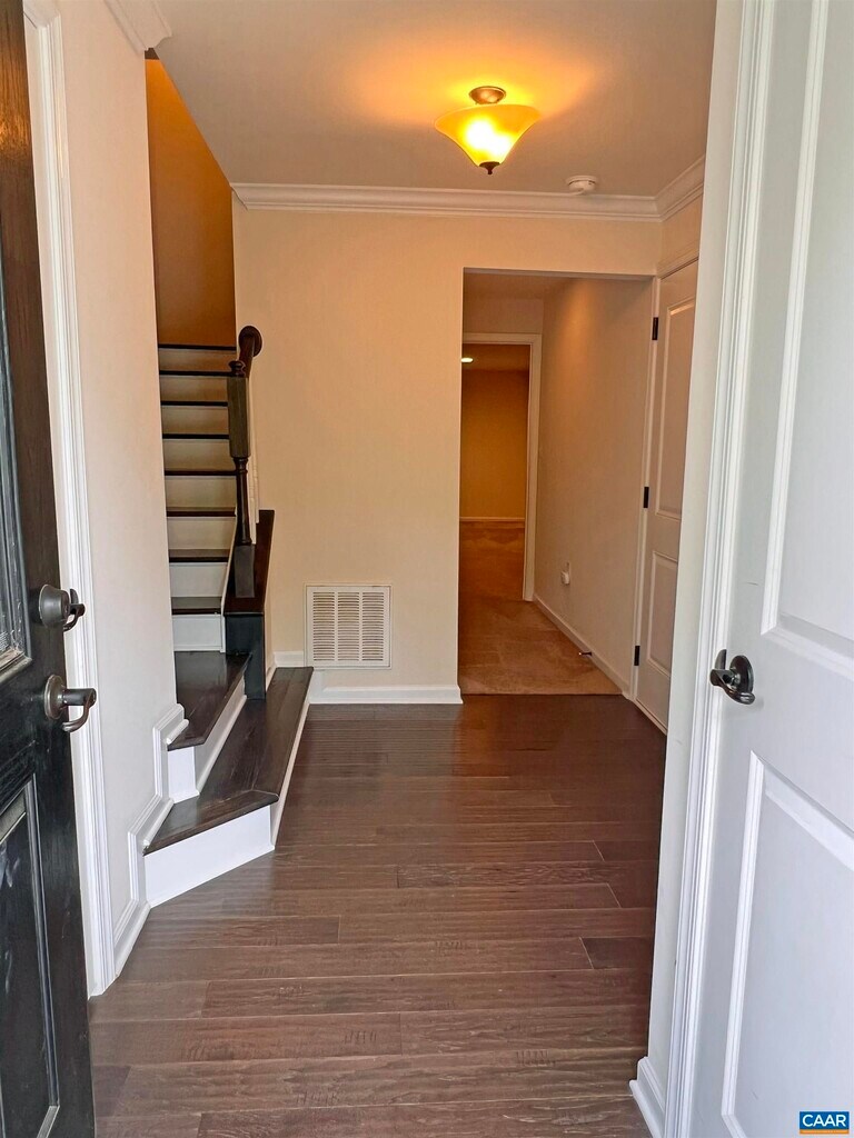 Spacious and beautifully designed 4-bedroom townhome in a prime location, just minutes from Charlottesville and UVA. Built in 2016, this energy-efficient home offers modern comfort and style throughout. Enjoy high ceilings, granite countertops in the kitchen and bathrooms, stainless steel appliances, a full-size washer and dryer, and engineered hardwood floors in the main living areas. The bedrooms feature plush carpet for a cozy feel, and the bathrooms are finished with elegant tile. The entry-level bedroom with an en suite bath offers wonderful flexibility. Perfect for guests or a private home office. Love the outdoors? Step out your door and onto neighborhood trails that lead to Pen Park and Meadowcreek Golf Course, or connect to the John Warner Parkway Trail for a scenic walk or bike ride to Downtown Charlottesville.