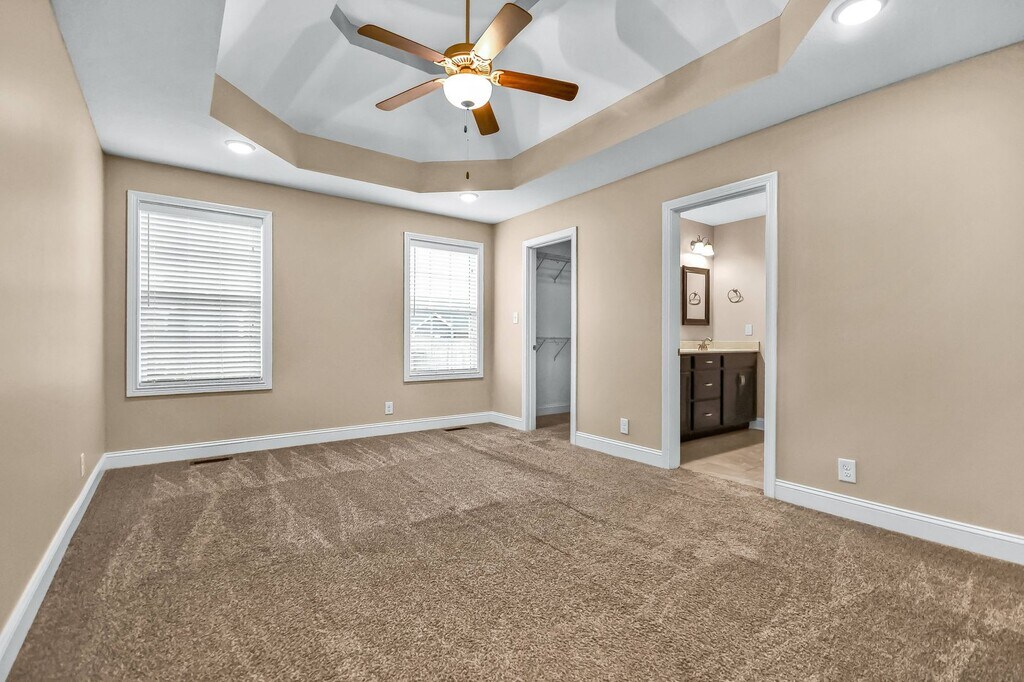 This well maintained three bedroom, two bath ranch home is conveniently located just minutes from restaurants, shopping, and more! You’ll love the open floor plan featuring a large living room with a cozy fireplace and beautiful engineered hardwood flooring! The open eat in kitchen offers stainless steel appliances, including a double oven, along with great cabinet space and a convenient pantry! The large primary suite features a full bath with a double vanity, soaking tub, and separate shower! Both guest rooms are generously sized, offering plenty of comfort and versatility! Outside, enjoy a great outdoor space complete with a covered deck and fenced yard, ideal for relaxing or entertaining! Pet Rent Scale - Dogs: $25.00 per month - Cats: $35.00 per month