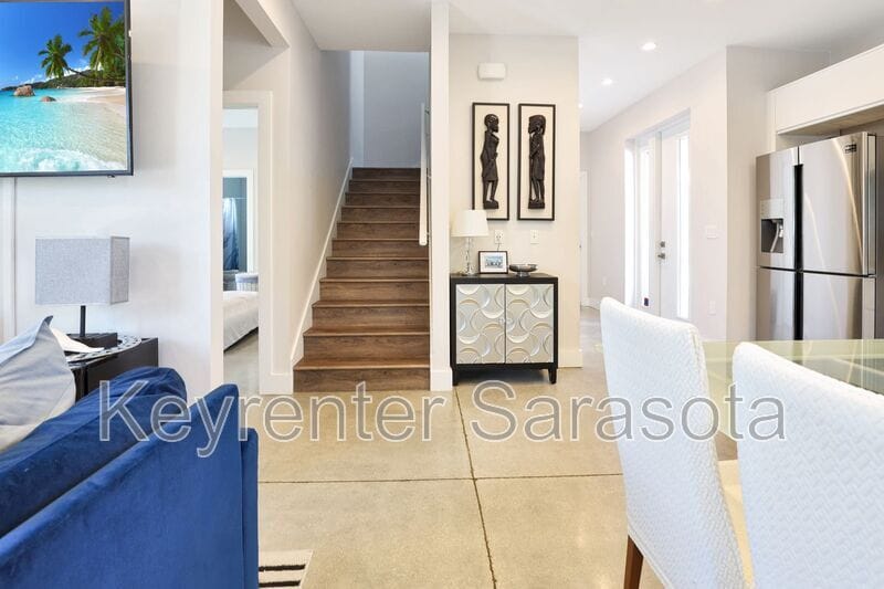 This gorgeous modern townhouse boasts 4 spacious bedrooms and 3.5 bathrooms, offering ample space and comfort for a family. The kitchen is a chef's dream with granite countertops and stainless steel appliances. The open floor plan includes dining space and cozy living room, both featuring high/vaulted ceilings and hardwood floors, creating a warm and inviting atmosphere. The townhouse also includes loft space for a dedicated office/desk space, perfect for those who work from home or homework. The primary suite is a true retreat with a walk-in closet and a private balcony. Outside, you'll find a fully fenced patio, perfect for outdoor entertaining. Additional amenities include a one-car garage, 2 guest parking spaces, and a laundry room. No HOA. Central Sarasota location with just a short walk to Trader Joe's and Barnes & Noble. You're minutes away from Siesta Key beach and downtown Sarasota. ______________ To learn more about this property or to schedule a viewing, please contact Keyrenter Sarasota at +1 or via email at info@. Visit our website at for more information. BASICS * Application Link: * Availability: Jan 20th * UNFURNISHED * Pets Allowed: NO * Utilities: Garbage Pick Up and Lawn Care. Tenants are responsible for all other utilities. * Parking: 1 car garage with Tesla Charging Station * Renter's insurance is required. (included in the resident benefit package) * Lease Term: 12 Months THE IMPORTANT THINGS THAT YOU SHOULD KNOW: * No Smoking * Application Fee is $75 per Adult, Non-Refundable. * Please review Keyrenter’s Application Criteria prior to applying. * Application turnaround time is 1-3 Business days * $55 monthly Residents Benefit Package * $150 Leasing Fee (Admin Fee) NON REFUNDABLE * Security Deposit: One Month’s Rent * Last Month’s Rent: One Month’s Rent * No HOA * All Keyrenter Sarasota residents are enrolled in the Resident Benefits Package (RBP) for $55/month which includes renters insurance, HVAC air filter delivery (for applicable properties), credit building to help boost your credit score with timely rent payments, $1M Identity Protection, move-in concierge service making utility connection and home service setup a breeze during your move-in, our best-in-class resident rewards program, and much more! More details upon application. * Other terms, fees, and conditions may apply. All information is deemed reliable but not guaranteed and is subject to change. Rent is subject to change. * Please contact kevin@ for more information or to schedule a tour. Contact Us: Office: BEWARE OF SCAMMERS * The owner will NEVER contact you to lease the house on their own, ONLY Keyrenter Sarasota will be in contact with you. If someone reaches out claiming to be the owner, they are trying to steal your money or personal information. * We do not list our properties on Craigslist. * We will always lease the property for exactly the price and deposit posted on our official website. * Keyrenter will never ask you to wire money or to take the key from the property. We allow self-guided tours with an appointment. Call for details. All information is deemed reliable but not guaranteed and is subject to change. Amenities: patio, fenced yard (full), garage opener, granite countertops, stainless steel appliances, walk-in closet, cable ready, dining room, guest parking, high/vaulted ceilings, living room, office/den, balcony, hardwood floor, newly remodeled, tesla charger, laundry, 1 car garage, yard (fully fenced), electric car charging station, tesla charging station