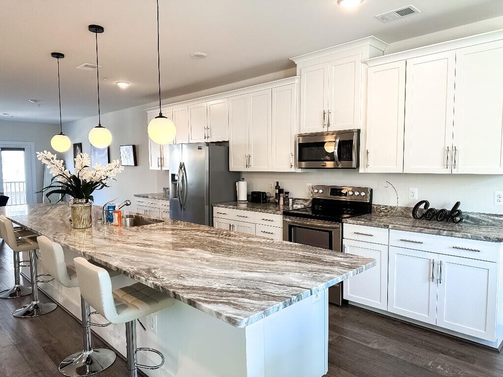 Spacious and luxury townhouse in sought-after One Loudoun! $200 OFF rent special for limited time. Well-maintained 3 bedroom 2.5 bath home. 1-car garage on entry level. Very large gourmet kitchen ideal for entertaining. Extended island. Stainless steel appliances. Beautiful engineered waterproof wide-plank hardwood floor throughout kitchen area. Expansive living room with plenty of natural light. Fireplace heater conveys. 2nd balcony/deck of living room. Rooftop terrace is like your own private oasis. Watch the sun set, or catch the local fireworks display on the 4th of July. Great views and plenty of privacy. Community amenities include tennis courts, pool, dog run, basketball court, clubhouse, volleyball court, parks, and trails. Steps from One Loudoun, which has numerous restaurants and retail establishments. Take advantage of Trader Joes, CVS, Top Golf, Silver Diner, Close to Whole Foods, Home Goods, Harris Teeter, Starbucks, Soul Cycle, and the Farmer's Market. Elementary school is 2 blocks away, and playground and daycare are around the corner. Easy access to Silver Line Metro, Dulles Toll Road (267), Route 7, Loudoun County Parkway, Route 28, and Dulles Airport. WELCOME HOME!