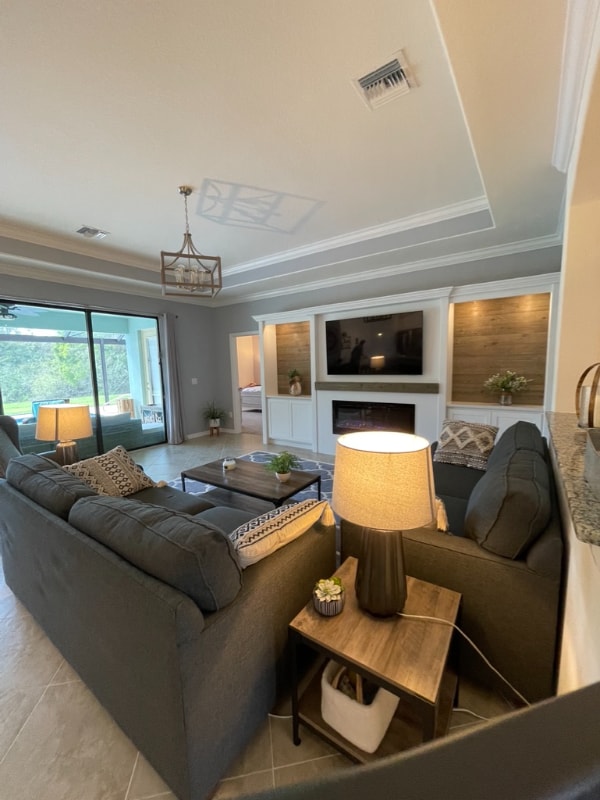 Property Id: 1143781 Beautiful pool home in the RESORT STYLE COMMUNITY of Gran Paradiso. This FURNISHED HOME is available on May 01, 2026. There are 4 bedrooms, 2 bathrooms, with 2 car garage spaces and plenty of parking. There is a sunny screened in pool lanai that overlooks a preserve view. The pool is heated. A large kitchen with stainless steel appliances, countertop seating and eat-in dinnette and formal dining room. The living room has an electric firepalce and smart TV. The primary bedroom has a walk-in closets and a bathroom. There are 2 guest bedrooms, and a den. The 2nd bathroom has a tub/shower. There is a laundry room with a washer and dryer. The one-car garage also has a driveway for additional parking. Located in the area only "A" RATED SCHOOL DISTRICT. Gated and deed-restricted community, with countless amenities and activities,community pool, spa, clubhouse, impressive gym, aerobics, sauna, steam room, tennis, pickle ball, playground, bike, and golf cart paths,
