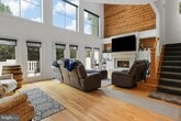 Do not miss this one! Your own little oasis on the water. This five level townhome is built into the side of a hill so don't discount the view from the front of the house. Enter from the front at the next highest level with soaring ceilings open to below and beautiful views of Lake Audubon through the trees. Upstairs is the primary suite with a cathedral ceiling, bonus room for office,nursery or mediation, spa-like bath and lots of closet space. One level down is the main level with open great room with dramatic fireplace surround accessing a deck and kitchen with tons of cabinet space, eating area. Next, go down to the two remaining bedrooms, one with adjoining full bath and open area. The lowest level (ground level in the back) has access to a back patio and has an open family room or gym, with full bath and an entertainment space. Elevator access to all levels, 2 car garage, and many more features. Take advantage of all that is Reston including trails, summer pools and tennis courts and special events. Close to the Silver line and Reston Town Center as well as Dulles toll road.