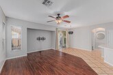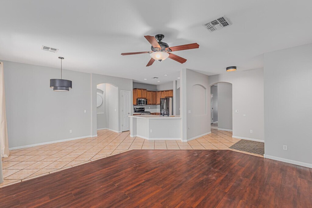 Take advantage of this fantastic rental opportunity! This lovely 3-bedroom,2-bath home features an appealing open layout with high ceilings,a soothing palette,blinds,and a harmonious blend of wood-look and durable tile flooring. The gourmet kitchen comes with solid surface counters,ample wood cabinetry with crown moulding,recessed lighting,stainless steel appliances,a pantry,and a peninsula with a breakfast bar. The primary bedroom showcases an ensuite with double sinks and a walk-in closet for an organized wardrobe. Unwind at the end of a long day in the backyard,which offers a covered patio perfect for enjoying a good book or a refreshing drink. Don't miss out on this charming residence!