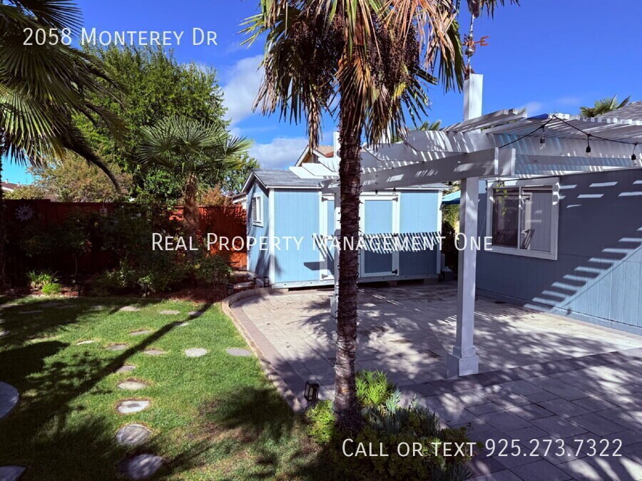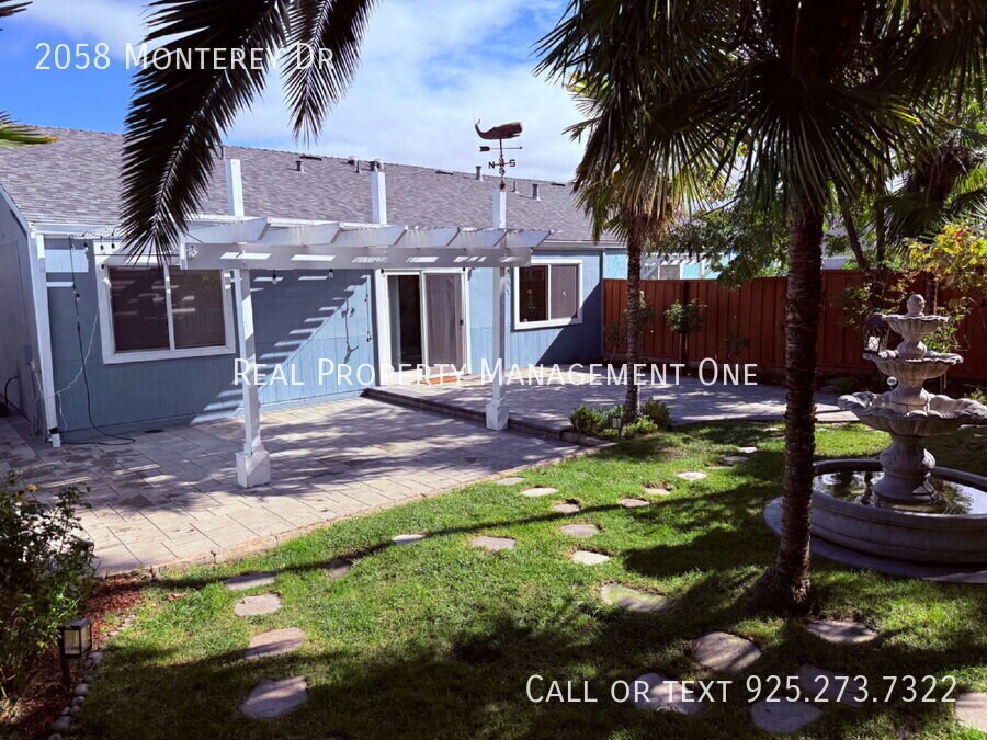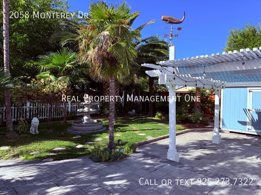 Do not miss out on this beautiful well kept 3 Bedroom, 2 Bathroom single story home with a terrific yard. The functional floorplan lends itself to easy day-to-day living. Offering a great space for special family time, the front living room features large windows, an attractive wood accent wall, and gas log fireplace for decorative purposes only. Showcasing white cabinets, newer 4-burner gas range, newrt microwave, newer Bosch dishwasher, and two appealing accent sun tunnels for additional natural light, the kitchen is open to the dining room. Sliding doors off the dining room provide for easy access to a secondary cozy, covered patio. Updated bathrooms include new vanities, lighting, bidets, shower door, and tub. New exterior and fresh, neutral interior paint, some new light fixtures, newer luxury vinyl plank flooring, new water heater, Ring camera, Nest, whole house fan, and plentiful attic/Tuff shed storage are just a few of the extra pluses. The backyard! The oversized two-tier, attractive, paver patio provides ample space for both the sun worshipper and those who prefer shade from the large pergola. Washer and dryer included in the 2-Car Attached Garage. Easy access to 580 Fwy and shopping. 18-Month lease preferred to start. No Smoking. Up to two small pets are considerd on an individual basis for additional pet deposit. Landscape maintenance can be provided for an additional $60 per month. Owner pays HOA; tenants are responsible for all other utilities. Refrigerator in the garage is included but without warranty along with the backyard fountain. Available Now! CA DRE#02047391Covered Patio
