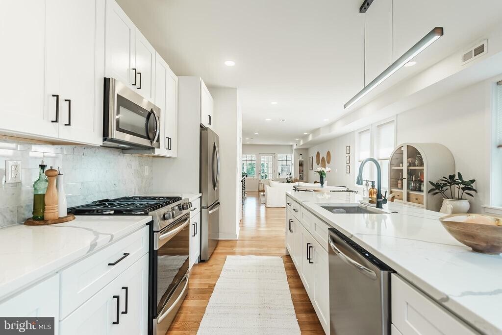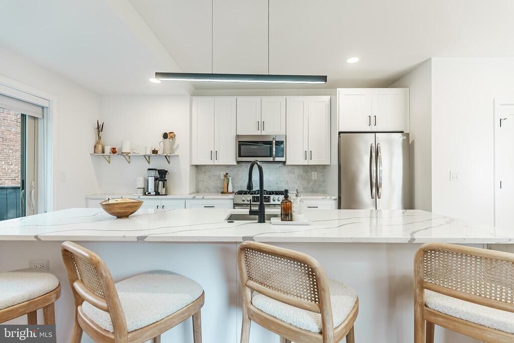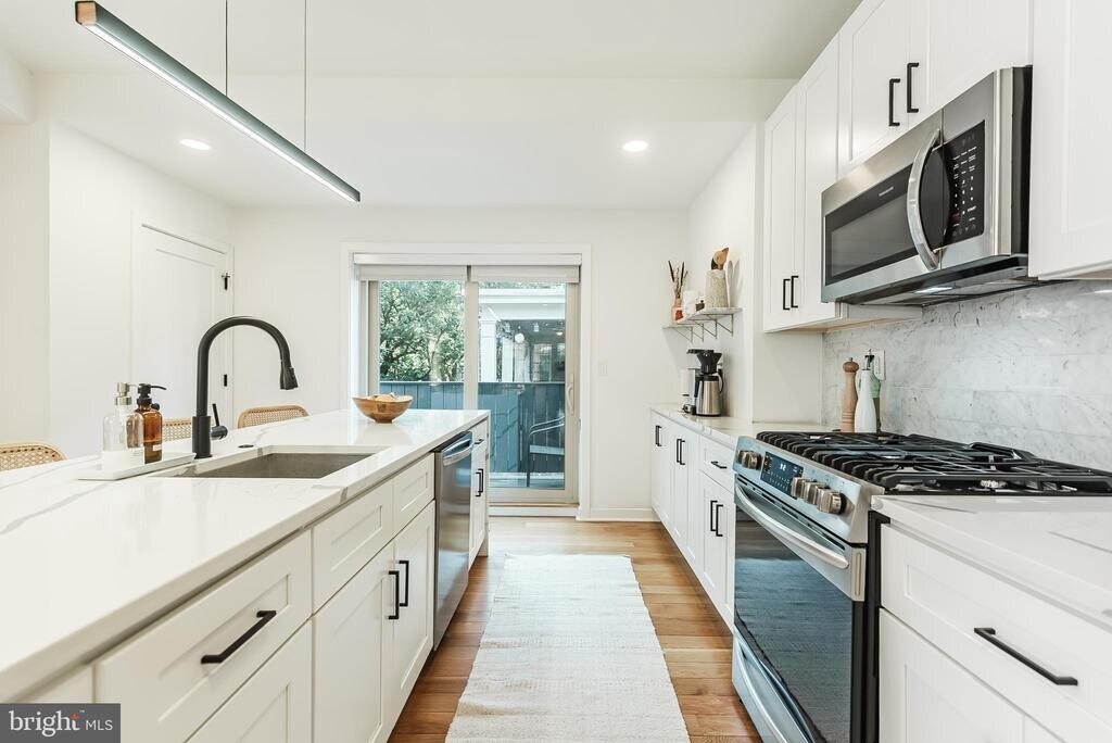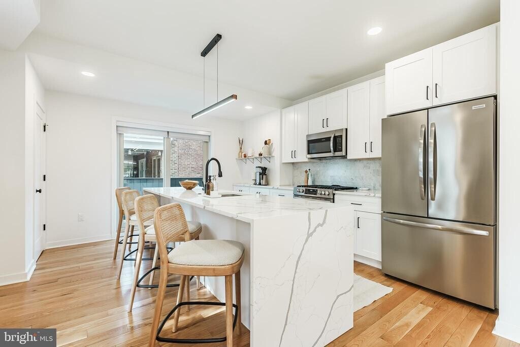 Available January 1st -- Stunning CORNER Townhome with GARAGE PARKING, Finished Basement, & Enclosed Front Porch + Rear Balcony off the Kitchen!! Situated on a beautiful & quiet tree-lined street, just a short walk from Fairmount Ave, this location is ideal. This Rare Corner property has 3 exposures of sunlit windows, flooding your home with natural Sunlight, PLUS a skylight in the primary bathroom! Fully-renovated-- This open floor plan with high ceilings boasts 3/4 white oak hardwood floors, a Showpiece Kitchen featuring an oversized WATERFALL center island with cascading quartz marbling, high-end appliances with sliding doors to your off-kitchen Balcony (perfect for grilling or morning coffee!). A convenient first floor powder room with a defined dining area really ties the room together. Upstairs you'll find a convenient laundry area, 3 large bedrooms with custom closets, a beautiful primary bathroom with a marble-tiled soaking tub-shower, a double vanity + mosaic tile floor, illuminated mirror (& don't forget the skylight!). The lower level boasts a cozy + modern fully-finished walk-out basement, perfect for a gym, office, kids rec. room, game room, speakeasy, in-laws, outlaws, you name it! Step right outside of your basement with the side door or into your garage (it doesn't even feel like a basement because it's above grade!). This home is on a larger lot than its neighbors and perfectly-utilizes the space, checking off all the boxes! Steps from the Art Museum and all the shops, cafes & restaurants on Fairmount Ave (and Whole Foods!), a short walk to Center City and the Schuylkill River trail, Boathouse Row/Kelly Drive with plenty of bus routes & public transit nearby. This is Art Museum PROPER and an ideal location. Fairmount Ave hosts farmers markets, flea markets, many events, Eastern State Penitentiary, and offers a unique opportunity to live in a thriving community with plentiful green space in the heart of the city! Tenants responsible for all utilities, 3 months rent required (first, last & security deposit), and credit/background/eviction check required.