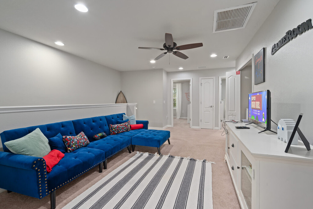 Feel at home in this spacious 5-bedroom home located in Windsor at Westside, a luxurious resort community near Orlando and Kissimmee. This home offers easy access to Disney World, SeaWorld, Universal Studios, and other attractions. This home features a living room, dining room, and a large, fully equipped kitchen with stainless steel appliances. Enjoy the convenience of a free washer and dryer. There are spacious indoor and outdoor dining areas and an outdoor patio. The kitchen is equipped with everything you might need to make a delicious meal. Enjoy free access to the community water park and amenity center/clubhouse. You have the option to add heat to the private pool. A pet fee of $150 is applied if you bring up to one house-trained dog. Located in the sought-after Windsor at Westside community, this home is a short walk from the clubhouse and offers easy access to world-class dining options just a couple of miles from the resort. The resort is located off state road 192 and US 27, near I-4, and just ten miles from Disney World, Animal Kingdom, and Orlando’s world-famous attractions. Quiet hours are between 10:00 PM and 8:00 AM. There is absolutely no smoking and no drugs allowed inside the home or elsewhere on the property. The maximum number of guests allowed at any given time is 10. The individual making the reservation must be at least 21 years of age and must be one of the guests staying at the property. No third-party bookings are allowed unless otherwise agreed upon in written form. Only the number of guests indicated on the reservation are allowed to stay overnight on-premise, unless otherwise agreed upon in written form. Late checkouts not approved in writing will be fined up to $250. The number of vehicles on the property should never exceed one per reservation, and only one car may park in back of the home. Failure to take out the trash and dispose of it properly per instructions upon departure can result in fines up to $300. We reserve the right to terminate a reservation without refund, and/or pursue monetary fines if guests are found to be in violation of any of these rules. [SI]