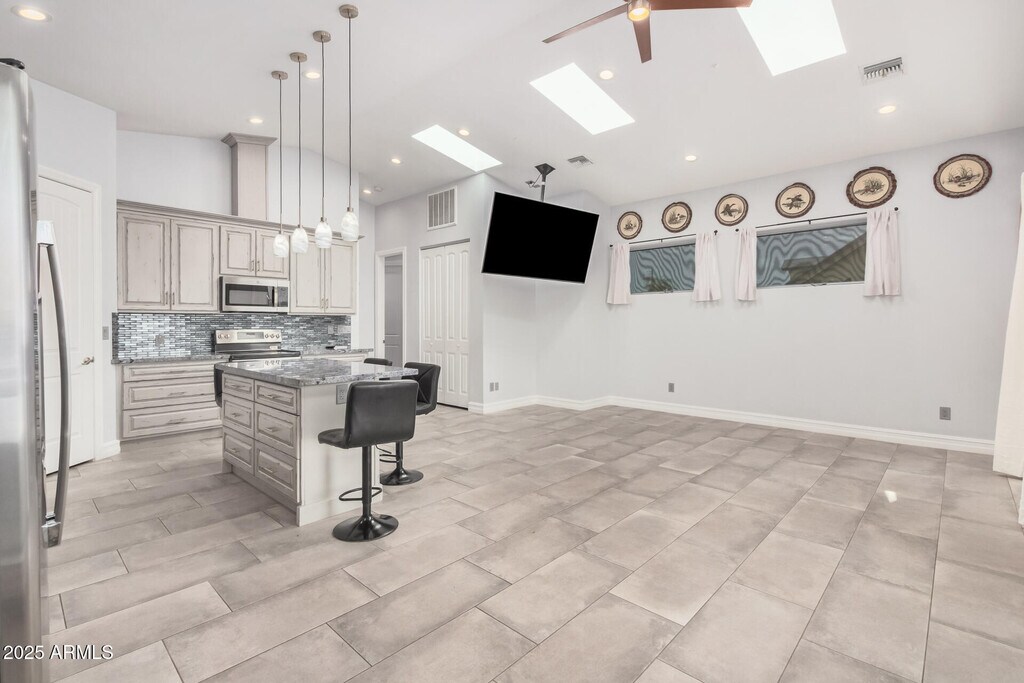 Casita for rent! Tucked away behind the main house,this beauty offers the perfect blend of comfort,privacy,and modern style. The inviting interior showcases tons of natural light,a neutral palette,vaulted ceilings,and tile flooring throughout. You'll love the spacious great room paired with skylights and sliding doors to the patio! The impressive kitchen boasts SS appliances,granite counters,a pantry,glass tile backsplash,recessed & pendant lights,ample cabinetry,and an island w/breakfast bar. With 1 bed & 1 bath,this gem is ideal for anyone looking to enjoy easy-care living. If you want to relax,the gated front patio awaits! Plus an observation deck where you can take in the mountain views from morning to night. Convenient parking is available right out front. Welcome home!