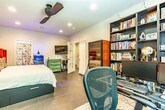 Front door is in the back of the complex facing the community shared green space. Small seven unit townhouse style condos. Gate code above, park in between cluster mail boxes and the gate. Luxury high style 3 story condo, built in 2016, exudes quality plus offers fantastic SOCO location. Close to Congress Avenue shopping, music and restaurants, but tucked away offering a tranquil setting. Steel frame construction, 14 foot ceilings. Approximately 2,000 square feet. 2 car private garage at entry level plus huge guest bedroom-office-exercise or combo with full bathroom, and closet. Second level has beautiful wood floors open living, dining, high end kitchen. Bosch Appliances, Pantry, Guest Bathroom and European designed wrought iron balcony. Third floor landing includes bar area with entry to roof top deck supplying views and expansive entertainment areas. And the privately placed primary bedroom, yummy bathroom with dual sinks, wet area with freestanding bath tub and two walk-in custom designed closets. Additionally, the property includes two dedicated garage spaces, presenting secure and protected accommodation for vehicles and contributing to a highly organized and functional living environment. This condominium offers an exceptional foundation for refined urban living. MLS ID 3206206