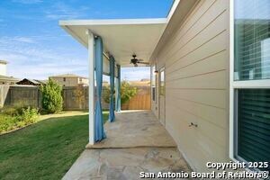 Looking for a place that feels like home the second you walk in? This 3-bedroom, 2-bath beauty in Elley Crossing has it all, plus a study for your office, playroom, or gaming setup. The kitchen is the real star here: granite counters, stainless appliances, and an island that makes meal prep (or snacking) way easier. The open floor plan means you will never miss a moment, whether you are cooking or catching the game in the living room. The primary suite comes with big windows, a walk-in closet, and a dual vanity bath. Out back, you have a covered patio with stone flooring and a fully fenced yard that is perfect for BBQ nights or just relaxing with a drink. And the location? You are only minutes from I-35, Buc-ee's, Creekside shopping, and great schools. Best part, this home comes with a rockstar management team so you can have peace of mind knowing everything is taken care of.