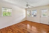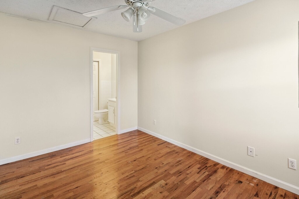 Two bedroom duplex with covered front porch and rear deck. Just a mile and a half from downtown Black Mountain and Lake Tomahawk, this tidy neighborhood of apartments, duplexes, and single family homes includes landscape maintenance and paved off-street parking. Hardwood floors are throughout the living room and bedrooms. The primary bedroom has an en suite half bathroom with linen closet, and the full bathroom is located off of the living room. Kitchen appliances include the electric range and refrigerator. Central heat/ central air conditioning and ceiling fans throughout. Tenant responsible for all utilities including water and electricity. Washer and dryer included! Available with a renewable one-year lease. No smoking. No pets. No cosigners.