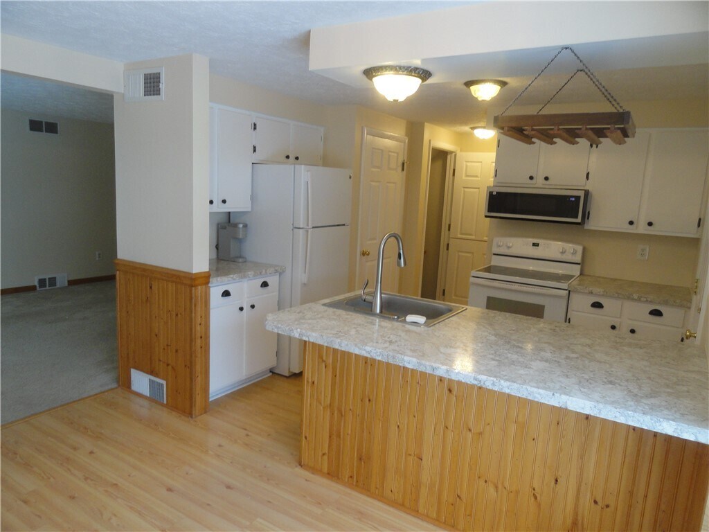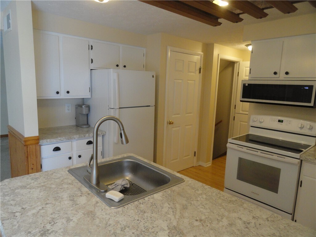 Economical living,this 3 bedroom 1.5 bath townhome has a finished basement with an egress and washer/dryer. Open 1st floor has fully equipped kitchen with a peninsula counter sink and built-in dishwasher,serving the dinette which offers a sliding glass door to the huge fenced in patio with stamped concrete. Front to rear living room with new wwc. Second floor 3 bedroom and one bath. The primary bedroom is charming with the wood picture framing on the walls.