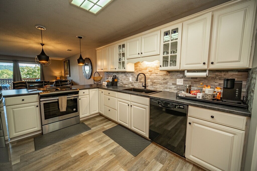 Step into one of the most popular gated communities in the area with this newly renovated condo offering a great view. Located on the main floor level with just four steps, this condo provides easy access and a deck for your morning coffee or evening beverage. Feel at home with exclusive access to all the amenities, including an onsite restaurant and golf course. This great location is close to the Branson Strip, Table Rock Lake, and Silver Dollar City. Welcome to your personal slice of heaven, curated with you in mind! There is plenty of room for everyone to relax together and feel at home. Take your pick for a great night's sleep in either of the two bedrooms, both featuring brand new king-size beds. The primary bedroom offers a little extra luxury with private access to the back deck and an attached en-suite bathroom featuring double sinks. There is even a queen air mattress in the spare bedroom to accommodate extra guests. You can make a tee time at Pointe Royale's golf course for a fee or enjoy an evening out at the clubhouse's bar and grill. Boat rental or storage is available at the State Park Marina, just 10 minutes away, offering a variety of boat rentals for a day out on the lake. While there is no boat or trailer parking onsite, you can park across the street at Branson Storage for $10.00 a day by mentioning you are a guest at Pointe Royale. This condo is ideally located close to the Branson Strip, Table Rock Lake, and Silver Dollar City, making it a perfect base for exploring the area. Enjoy the convenience of nearby attractions and the peacefulness of this serene community. Guests must be 25 or older to book this condo. The property offers 24-hour gated security, ensuring a safe and secure environment for your stay. [SI]