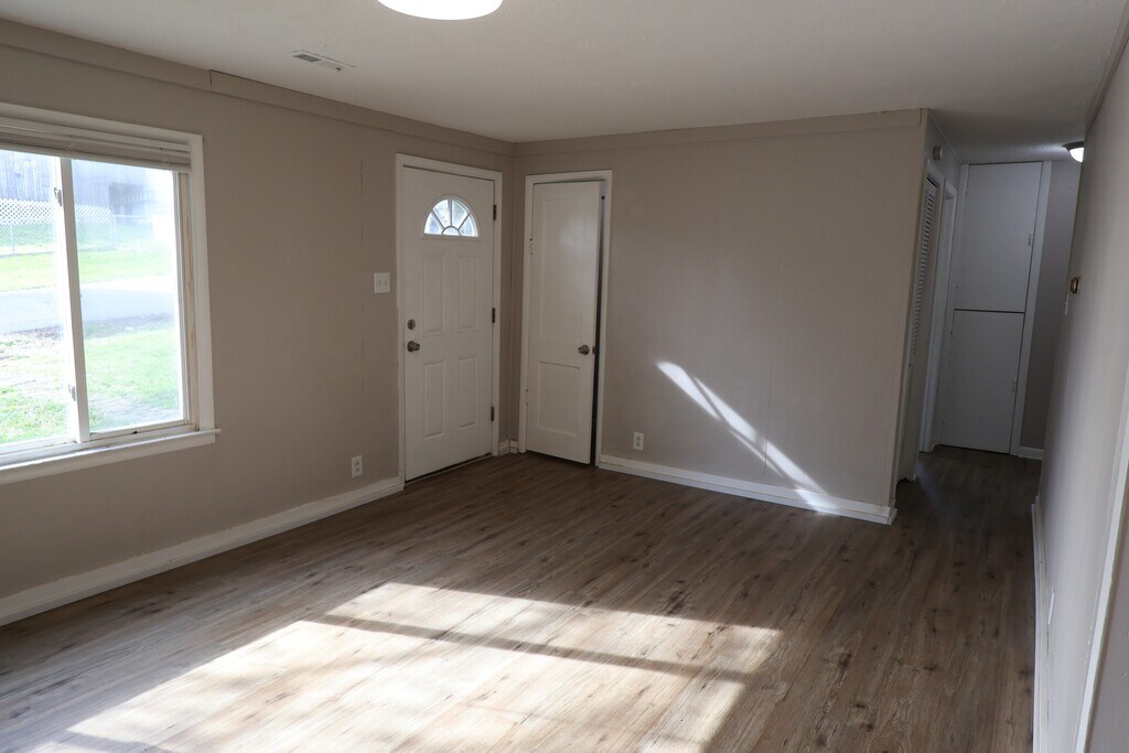 This home offers a comfortable layout with more space than you might expect. When you walk in through the front door, you are walking into the living room, which connects to the kitchen. Throughout the entire home, the flooring has been updated, and the walls have been repainted. The kitchen has plenty of cabinet and counter space, along with a refrigerator and range, so it's ready for everyday use. Outside, there's parking in front of the home. The once attached garage was completed and finished, becoming a flexible space for either storage, a home gym, or play area. Overall, it's a well-kept home with a functional layout, ready for someone to move in and make it their own. Information a Glance: 1. Price and Fees: a. Rent: $950.00 b. Deposit: $950.00 c. Application fee: $65 per adult 2. Key Specs: a. Bedrooms: 2 b. Bathrooms: 1 c. Utilities tenant pays: water, sewer, trash, lawn care, gas, electricity 3. Policies: a. No pets b. No smoking 4. Application and Availability: a. Apply online at 2 beds, 1 bath, 1,248 sq ft