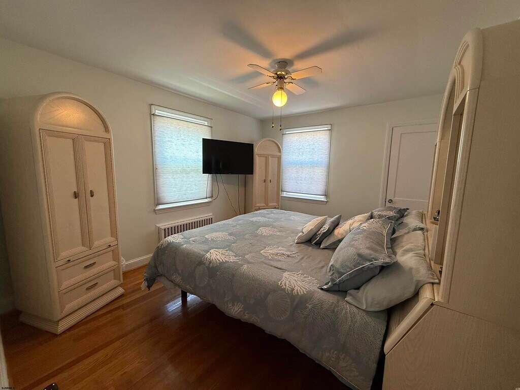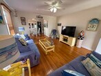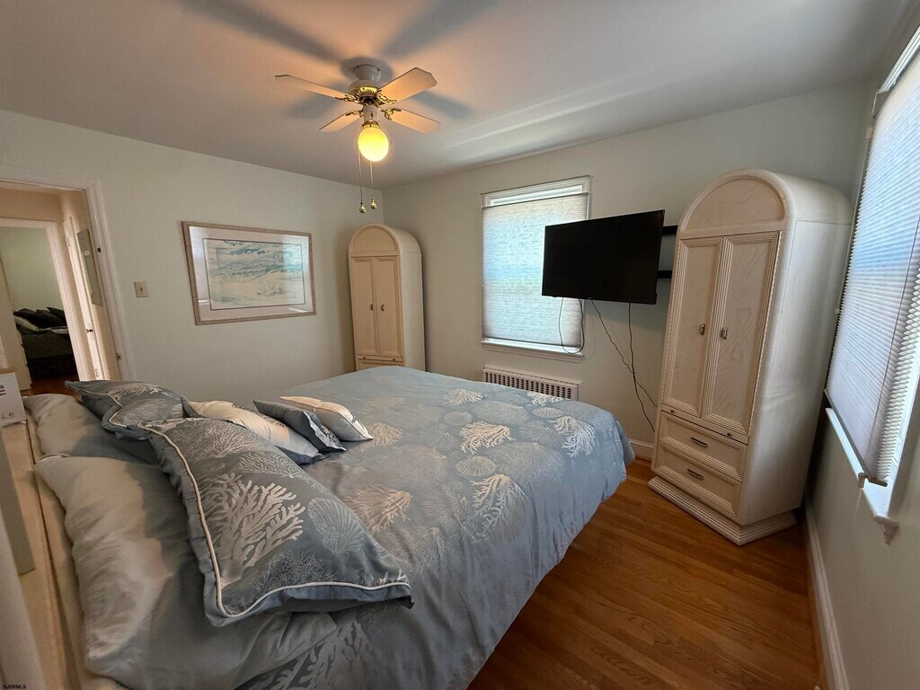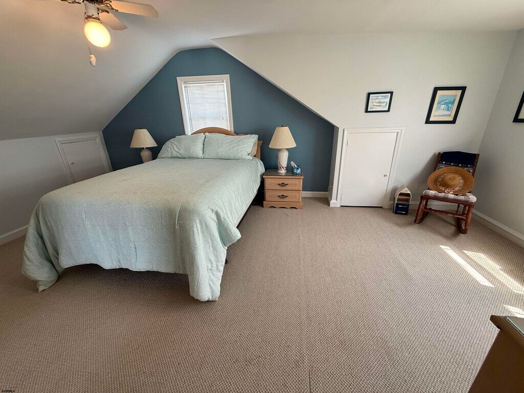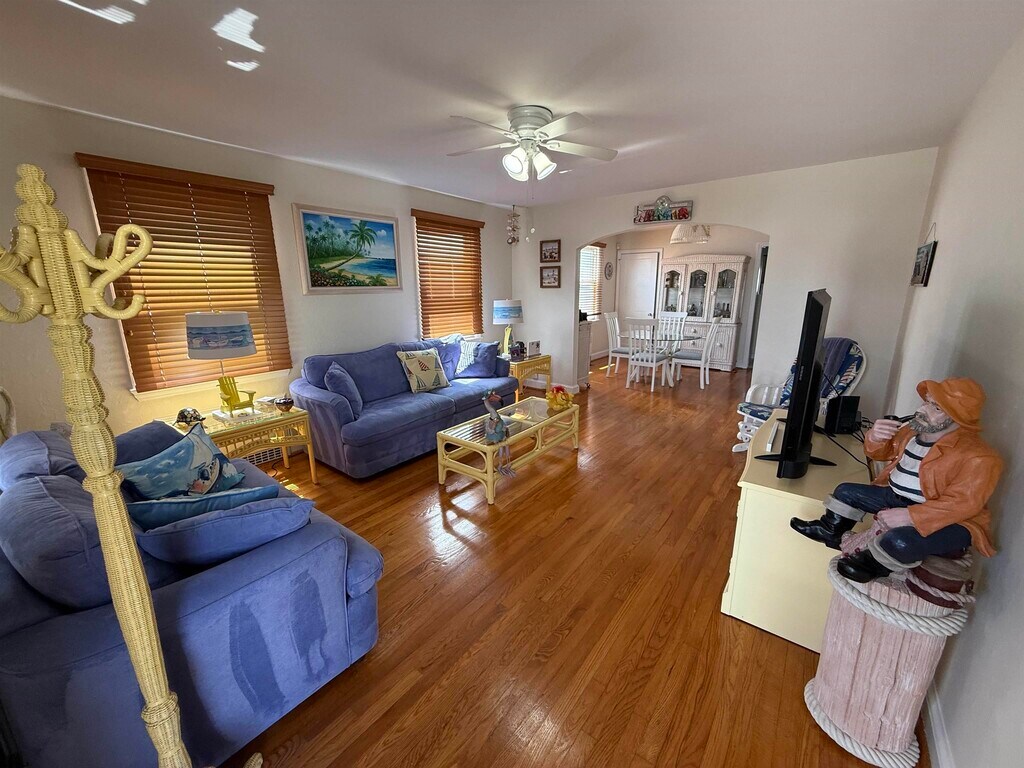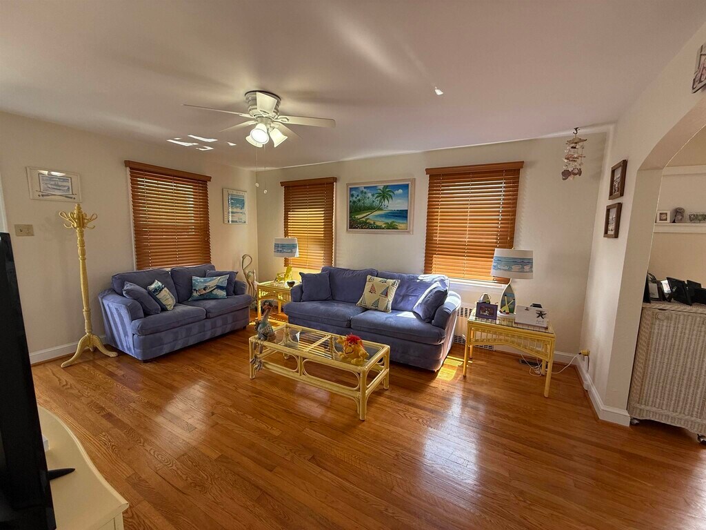 Nestled in one of Margate City’s most walkable neighborhoods, this home is just four blocks to the ocean beach badge entrance, and within easy reach of Margate’s boardwalk, bayfront paths, and the iconic Lucy the Elephant landmark. Meticulously maintained and brimming with classic Shore character, this 1½-story beach home offers 1,585 sf of bright living space, complete with hardwood floors, central air, ceiling fans, and insulated windows. Built for comfort and convenience, the first floor features two nicely sized bedrooms, a full bath, and a powder room—all wrapped around a sunlit, open living room and adjacent dining area. A well-equipped kitchen with generous pantry and adjoining laundry/mud room opens to a screened porch with yard access—a great spot to unwind after a brisk bayfront walk. Upstairs, discover a spacious en-suite bedroom with full bath and second living area, plus a small balcony to catch evening light. Step outside to a fully fenced oversized lot featuring an attached one-car garage, plus concrete driveway. The large backyard includes a brick patio and outdoor shower—perfect for cleaning up after winter walks or beach walks in warmer months. Winter Available: October 2, 2025 - June 1, 2026
