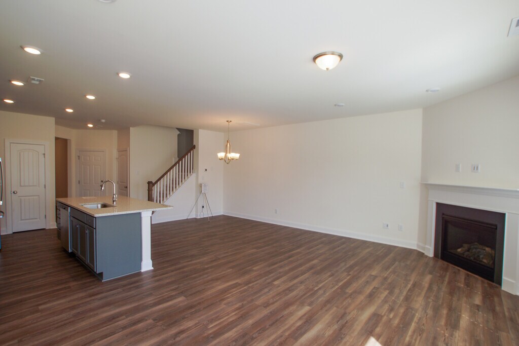 Brand New Townhome, move in ready after 4/27. Open floor plan with large kitchen island overlooking family room with corner fireplace and dining area, EVP floors on main level, granite countertops and Stainless steel Appliances in Kitchen and many more upgrades. Three generous sized bedrooms upstairs and a nice sized loft that could be used as a work space. Large Primary bedroom with bathroom featuring double sinks and a large shower. Neighborhood has a soccer field, dog park and is close to briar creek, RTP and Falls lake. Swimming pool access as well. Home is brand new and will have refrigerator and Washer and Dryer included