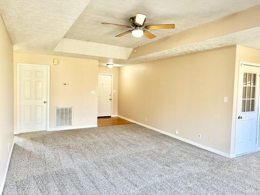 This spacious home comes with a Master Bedroom/Full Bathroom/Walk in Closet/Tray Ceiling with Ceiling Fan! Two extra Bedrooms with ceiling fans plus a Full Bathroom in the hallway. Laundry room with door is off of the Kitchen and a Hugh Living Room/Dinning Room leading out to a beautiful deck and fenced in back yard. Big 2 Car Garage! All for $1350 a month with an 18 month lease. 2 Approved Pets are allowed with a $400 pet deposit per pet, Refundable after move out approved inspection.